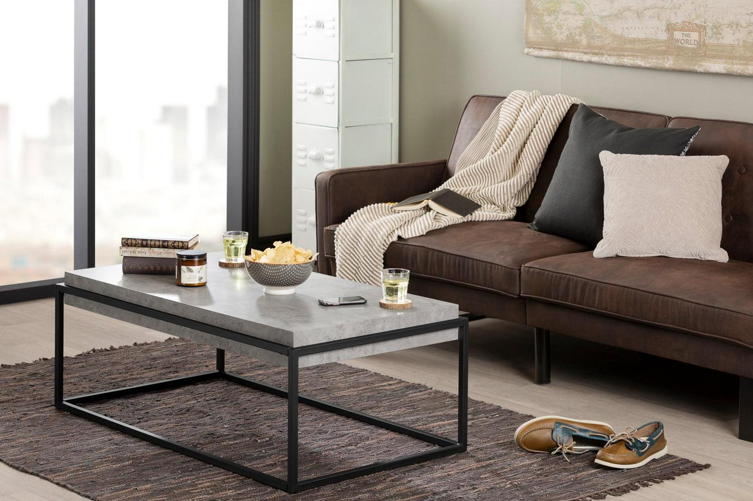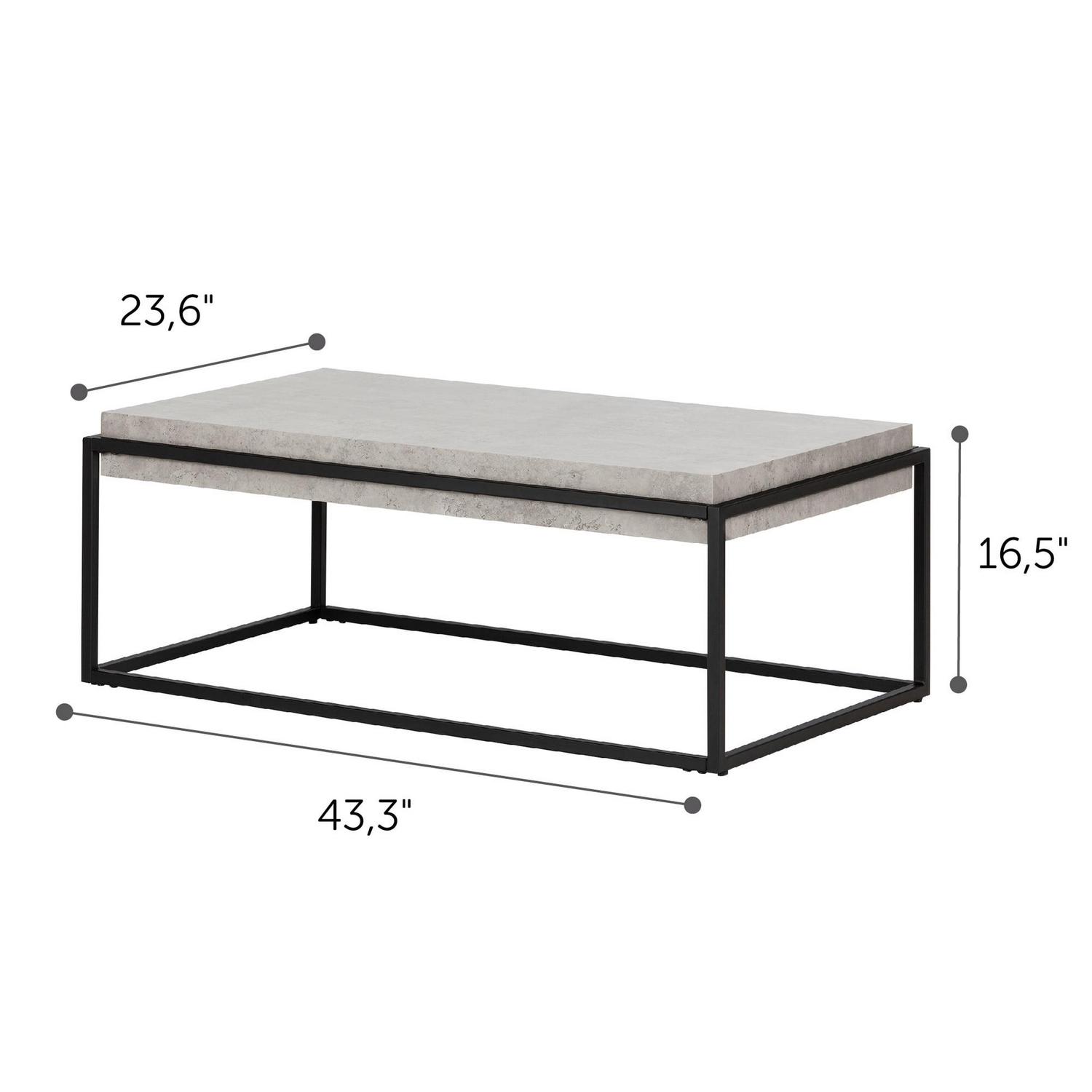 South Shore Furniture Mezzy Modern Industrial Coffee Table, Concrete Gray and Black