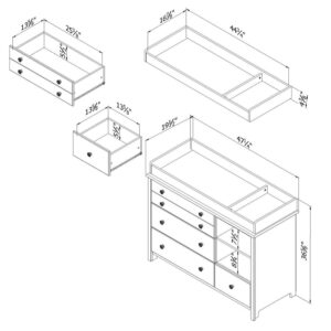 – B>Effortless Organization:/B> The South Shore Little Smileys Changing Table is designed with two easily accessible open storage spaces including a detachable shelf. It also offers three large drawers on the left and a smaller one on the right ensuring you have ample space for all your baby products and essentials.