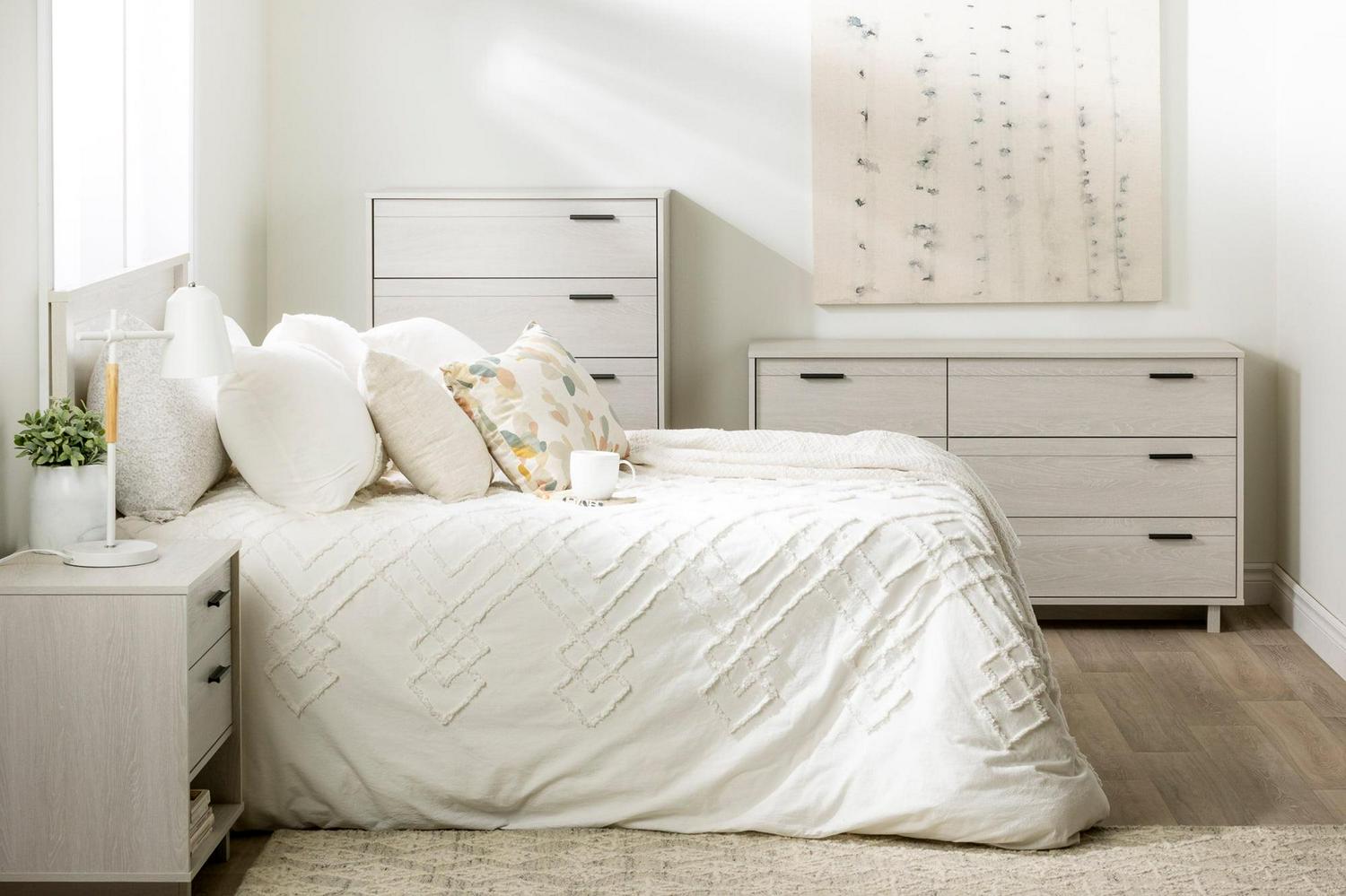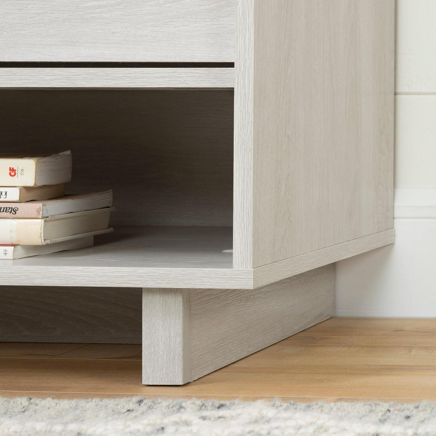 South Shore Fynn Nightstand with Drawers and Cord Catcher, Winter Oak