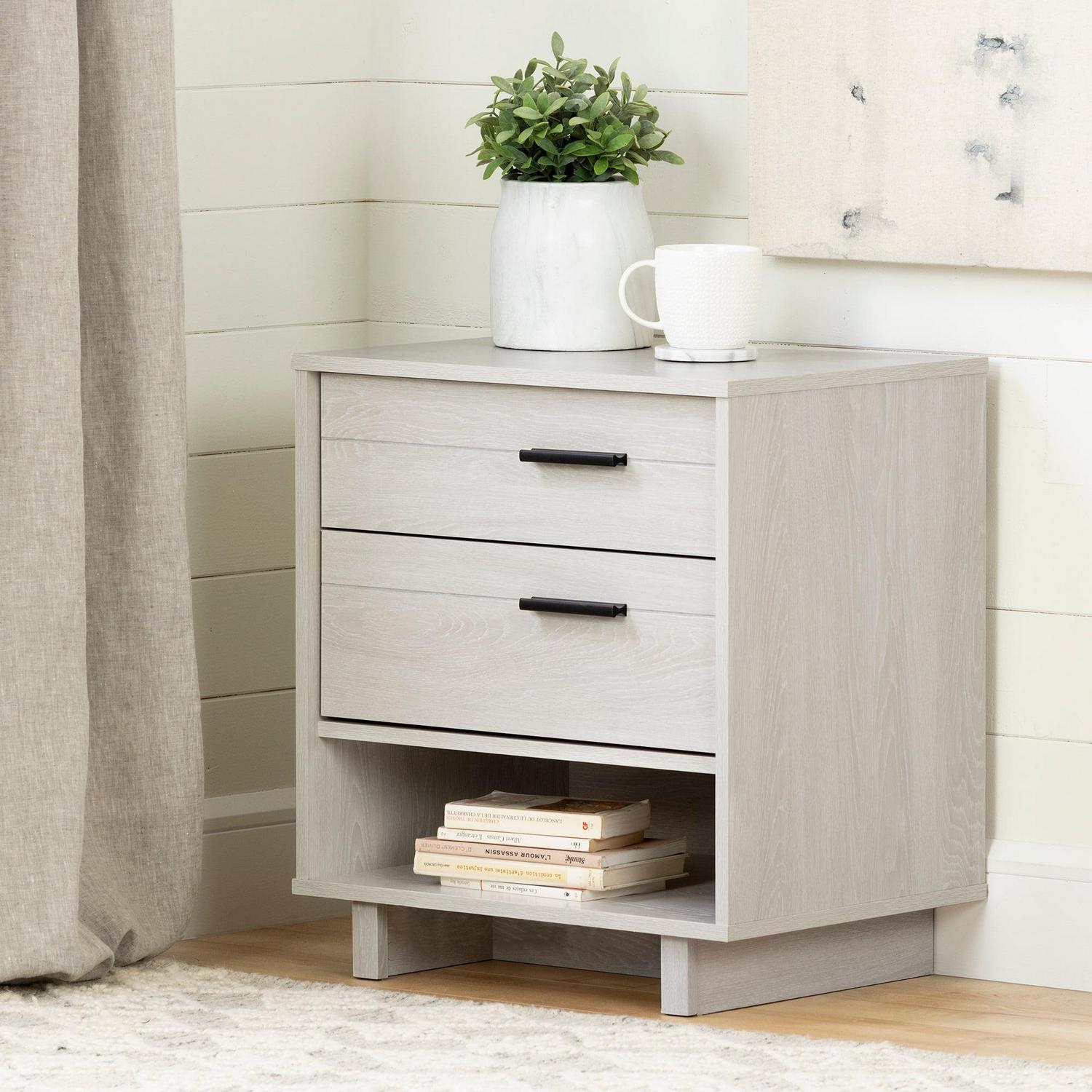 South Shore Fynn Nightstand with Drawers and Cord Catcher, Multiple Finishes: