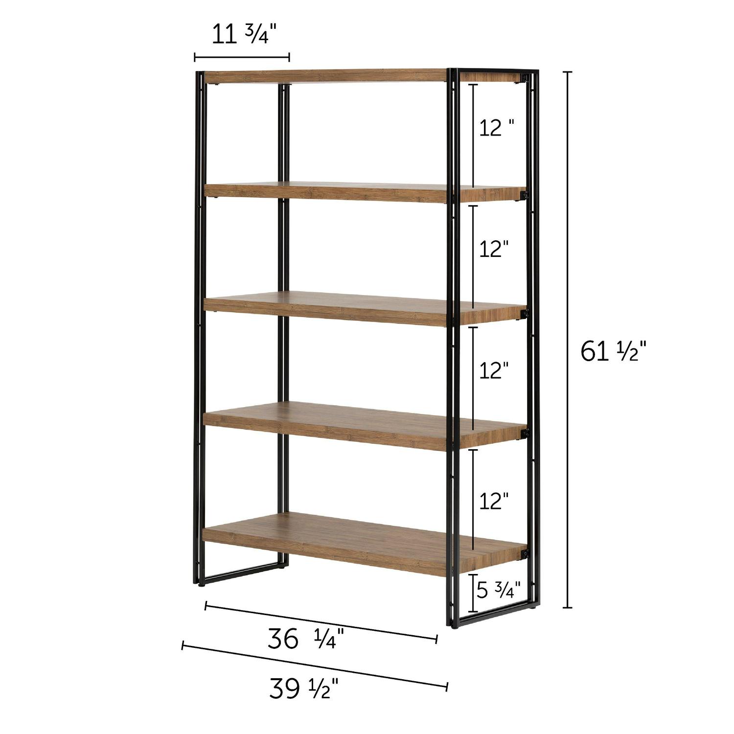 South Shore Gimetri, Industrial 5 Fixed Shelves – Shelving Unit, Bamboo
