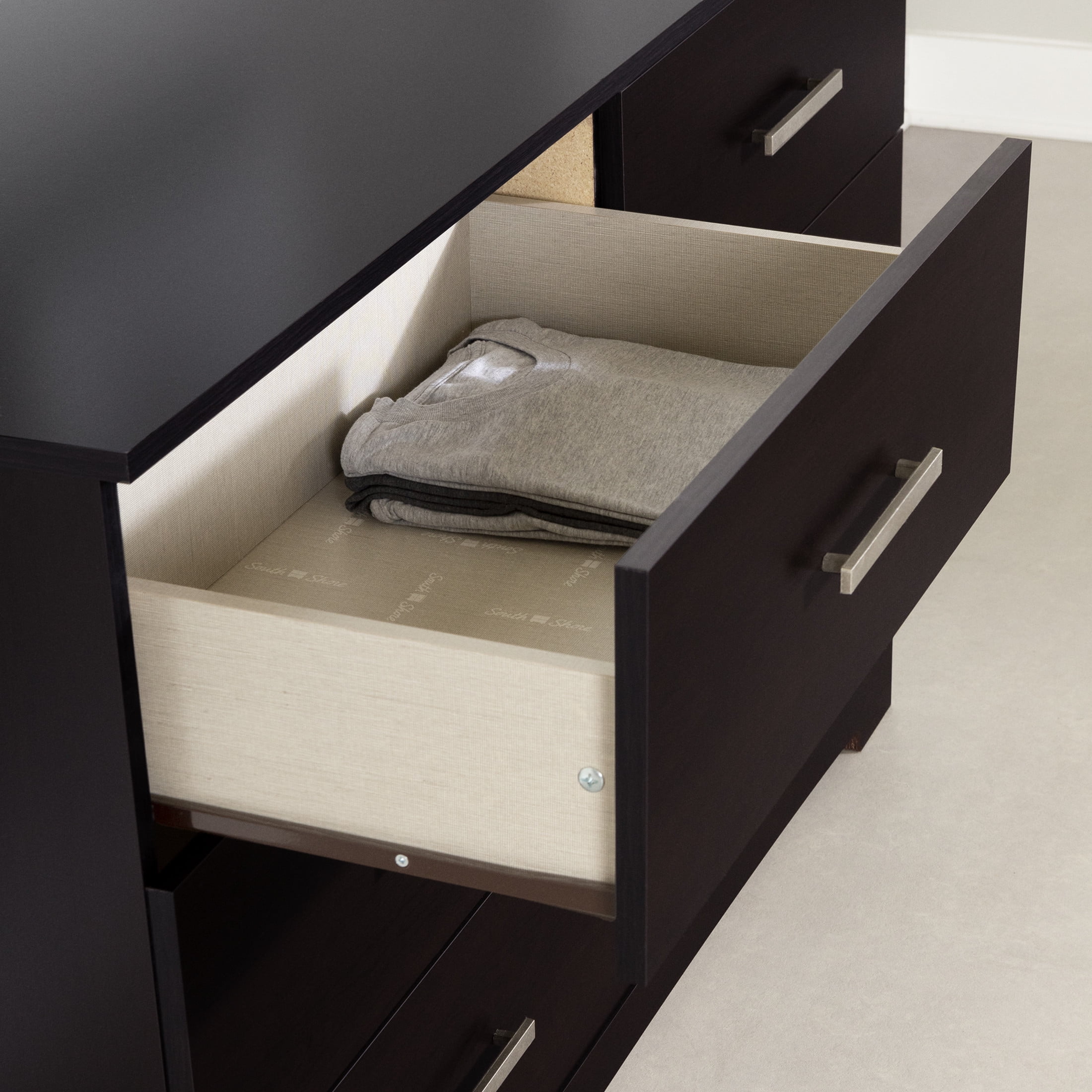 For REPLACING PARTS and HELP DURING ASSEMBLY, please contact us by phone at 1-800-290-0465, text message at 915-800-2833 (fees may apply), email at [email protected] or fill a part request form on . South Shore Gramercy, Contemporary 6-Drawer Double Dresser, Chocolate SIMPLE & MODERN DESIGN: This double dresser offers clean lines, straight metal handles and a modern look that will complement any bedroom décor. Its versatile design will live through any remodels and bedding updates. AMPLE STORAGE: Presenting 6 spacious drawers, this modern double dresser is all you need to keep organized and stay tidy. MULTI-FUNCTIONAL DRESSER: Designed with storage and style in mind, this double dresser can be used to store a variety of items anywhere in your home. Made in Canada. Accessories not included. 5-year limited warranty. Any questions? Contact South Shore, available 7/7: 1-800-290-0465 or Assembly is required and tools are not included. All products come with a clear assembly document that will guide you through all steps. If you have any questions during the assembly do not hesitate to contact South Shore Furniture for immediate support. This item is shipped in 1 box. Box dimensions : 58.25″ (L) x 20″ (W) x 6.5″ (H) 121 lb All our products meets or exceeds North American safety standards and our packaging are tested and certified to reduce the risk of damage during shipment. Wipe with a dry cloth.