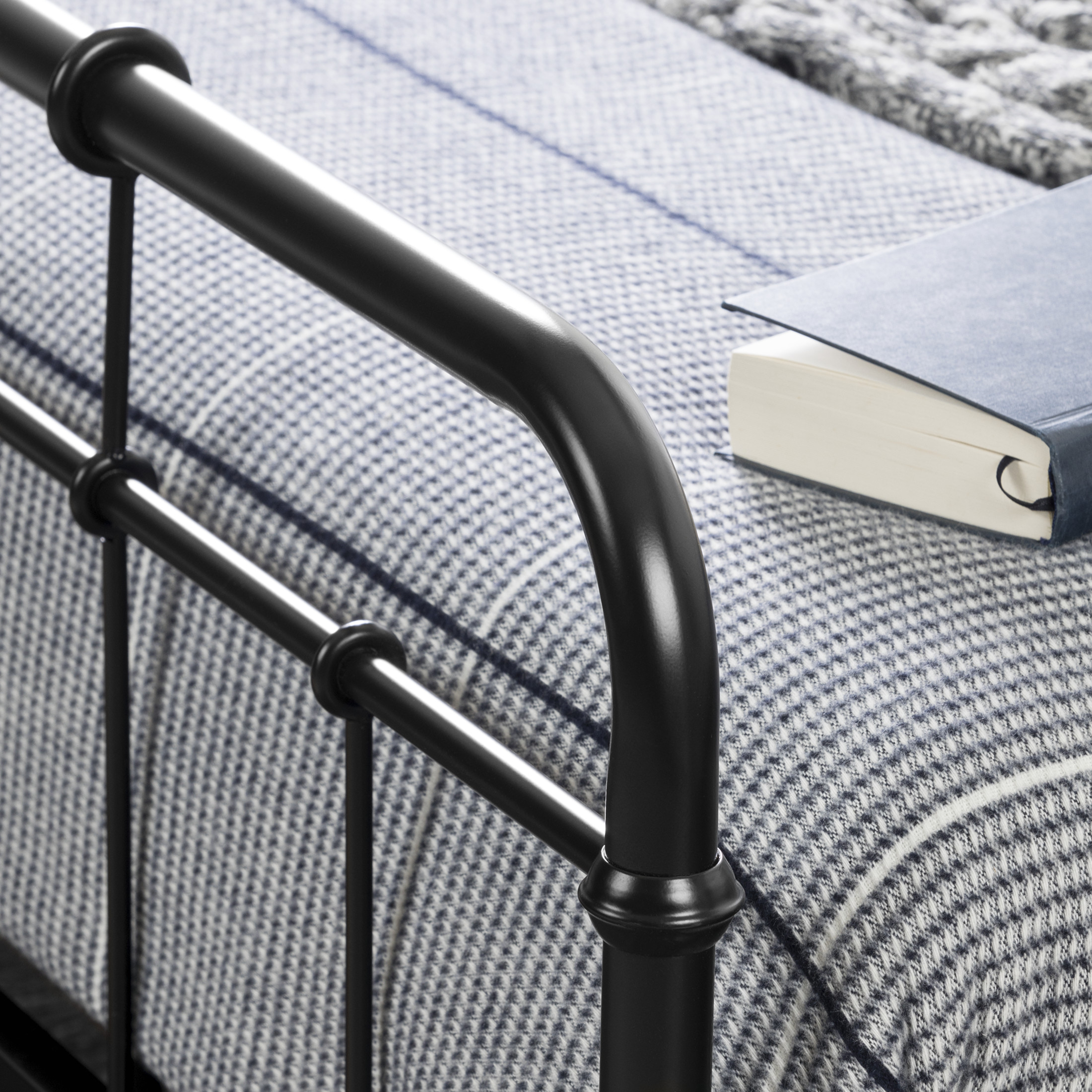 Add some personality to your bedroom with this oh-so-trendy metal bed, designed in the industrial style, that’ll never be out-of-date. It contrasts nicely with the rest of the furniture, adding a little character to the room, and the tiny details winding around the crossbars, lend a great touch of chic! Item includes the full bed, with headboard and footboard.