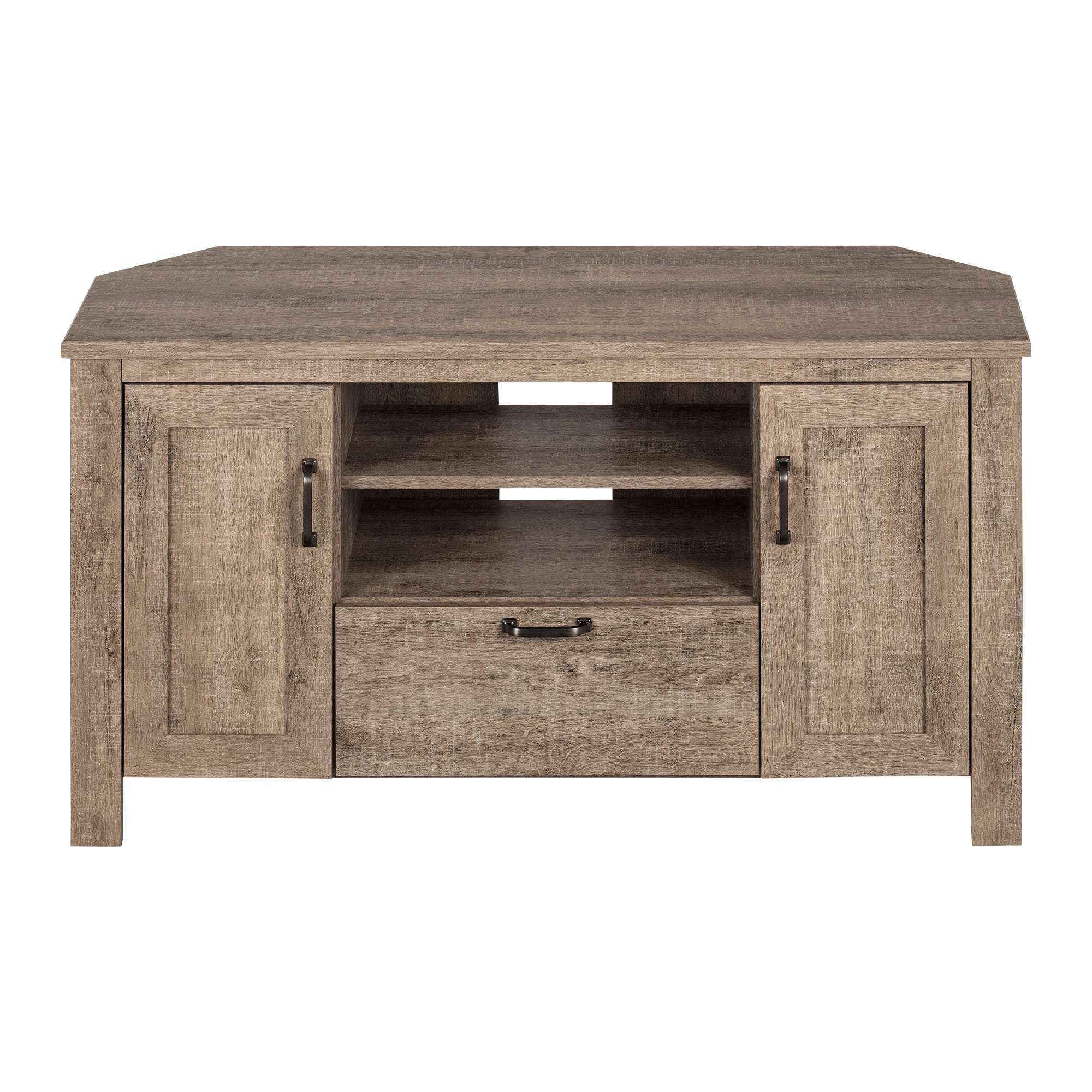 For REPLACING PARTS and HELP DURING ASSEMBLY, please contact us by phone at 1-800-290-0465, text message at 915-800-2833 (USA) (fees may apply), email at [email protected] or fill a part request form on . South Shore Lionel, Farmhouse Corner TV Stand, Weathered Oak CORNER FURNITURE: This TV stand is meant to be placed in a corner. It’s a great way to make optimal use of these spaces, which are often left empty. SMALL SIZE: The footprint of this furniture makes it more than perfect for small rooms or apartments. A great space saver! METAL SLIDES AND HANDLES: The drawer is fitted with a metal slide, which ensures a light, fluid movement. The cute metal handles that decorate this TV stand help give it a more modern look, and they’re easy to open HANDY SURFACE: The surface of this piece is suitable for a TV up to 48 inches. Made in North America with non-toxic, laminated particleboard. TV and accessories not included. 5-year limited warranty. Any questions? Contact South Shore, available 7/7: 1-800-290-0465 or Assembly is required and tools are not included. All products come with a clear assembly document that will guide you through all steps. If you have any questions during the assembly do not hesitate to contact South Shore Furniture for immediate support. This item is shipped in 1 box. Box dimensions : 56.5″ (L) x 18.5″ (W) x 6.25″ (H) 91 lb All our products meets or exceeds North American safety standards and our packaging are tested and certified to reduce the risk of damage during shipment. Clean with a dry cloth