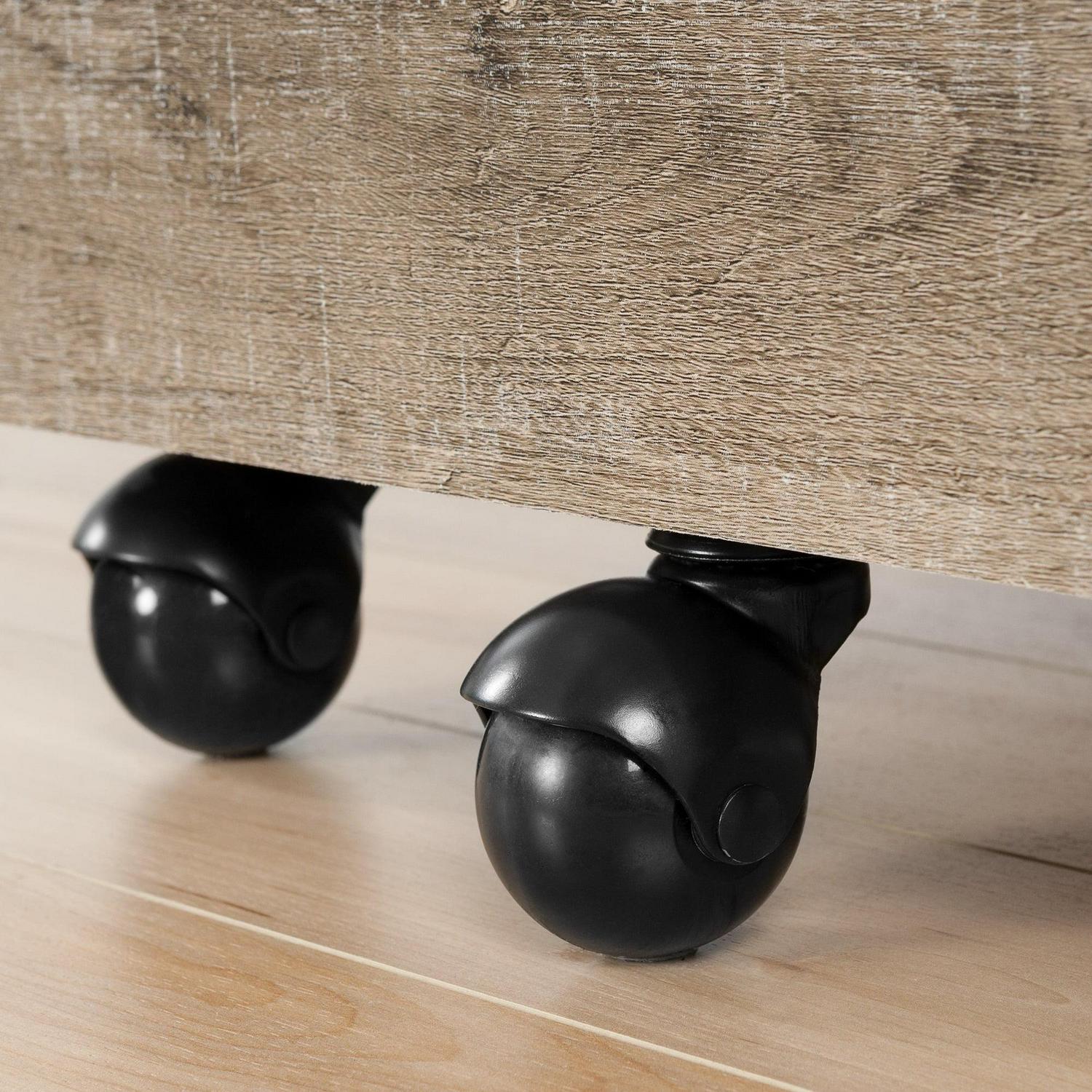 – 4 casters, so moving the unit around is simple and practical; 1 supporting caster, under the lower drawer, helps keep it stable