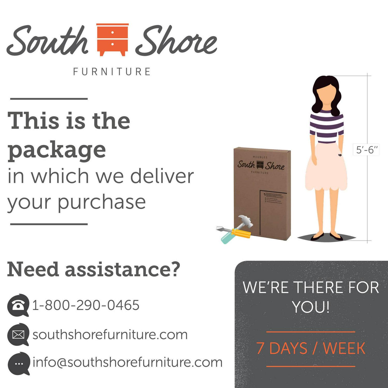 - 5-year limited warranty. Any questions Contact South Shore, available 7/7: 1-800-290-0465 or www.southshorefurniture.com