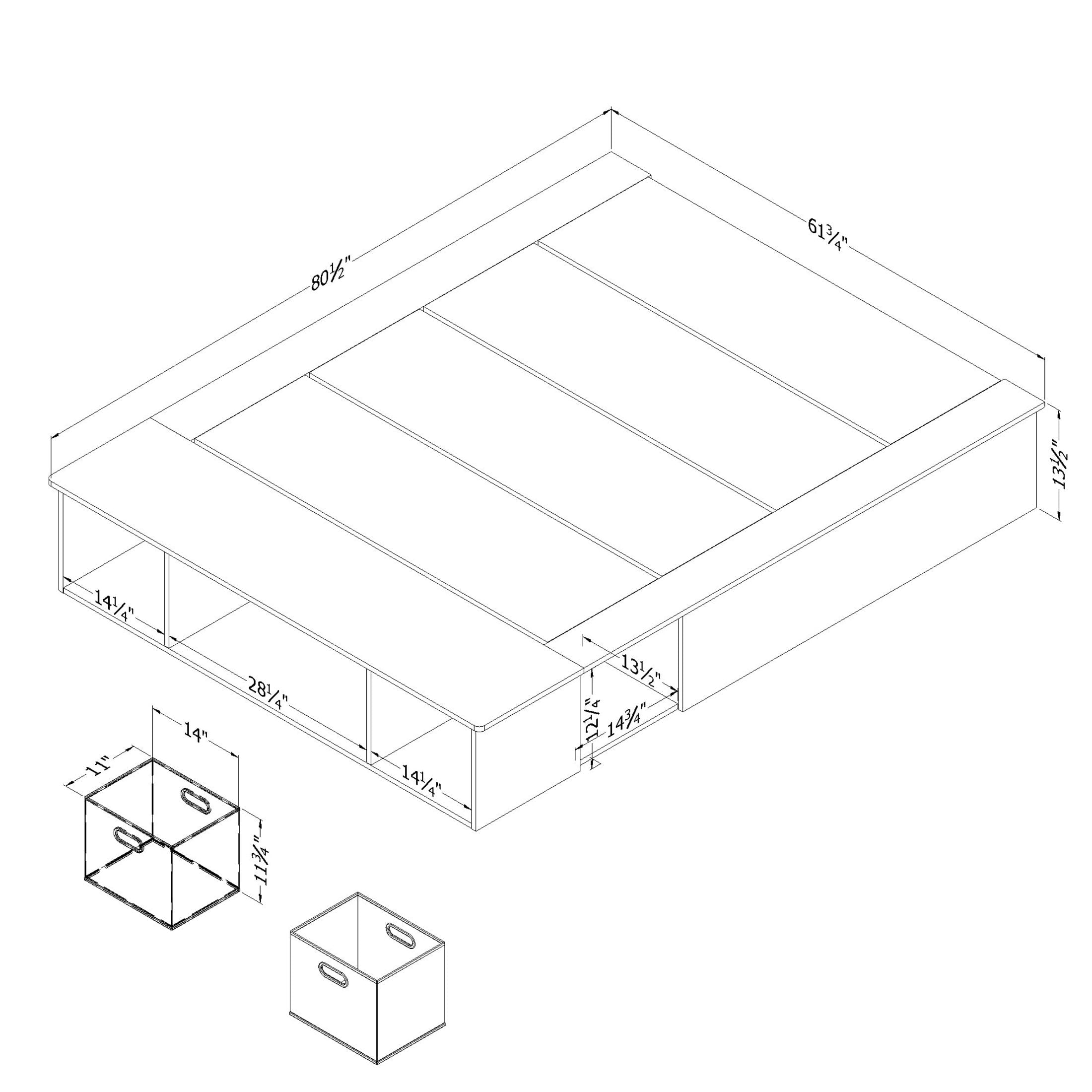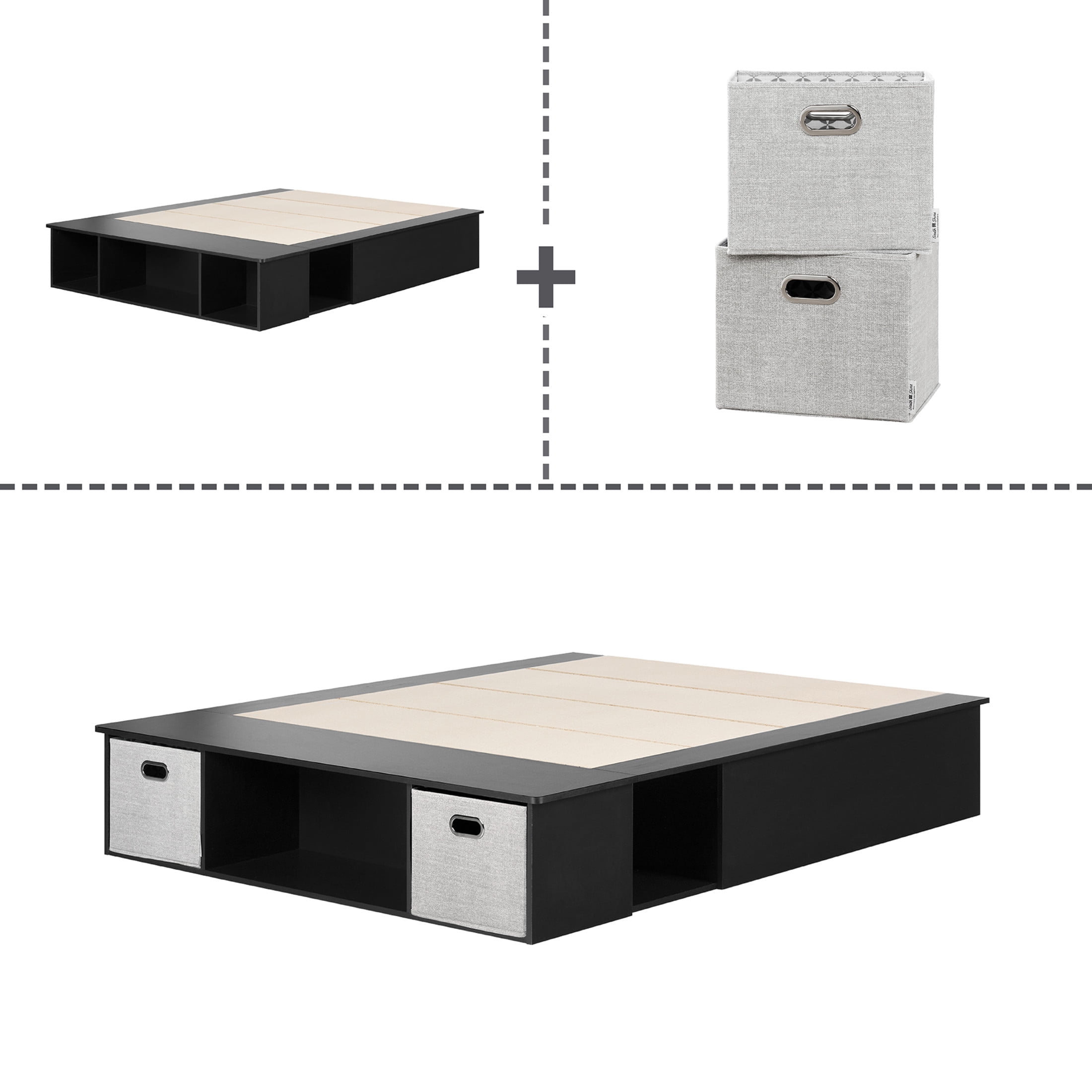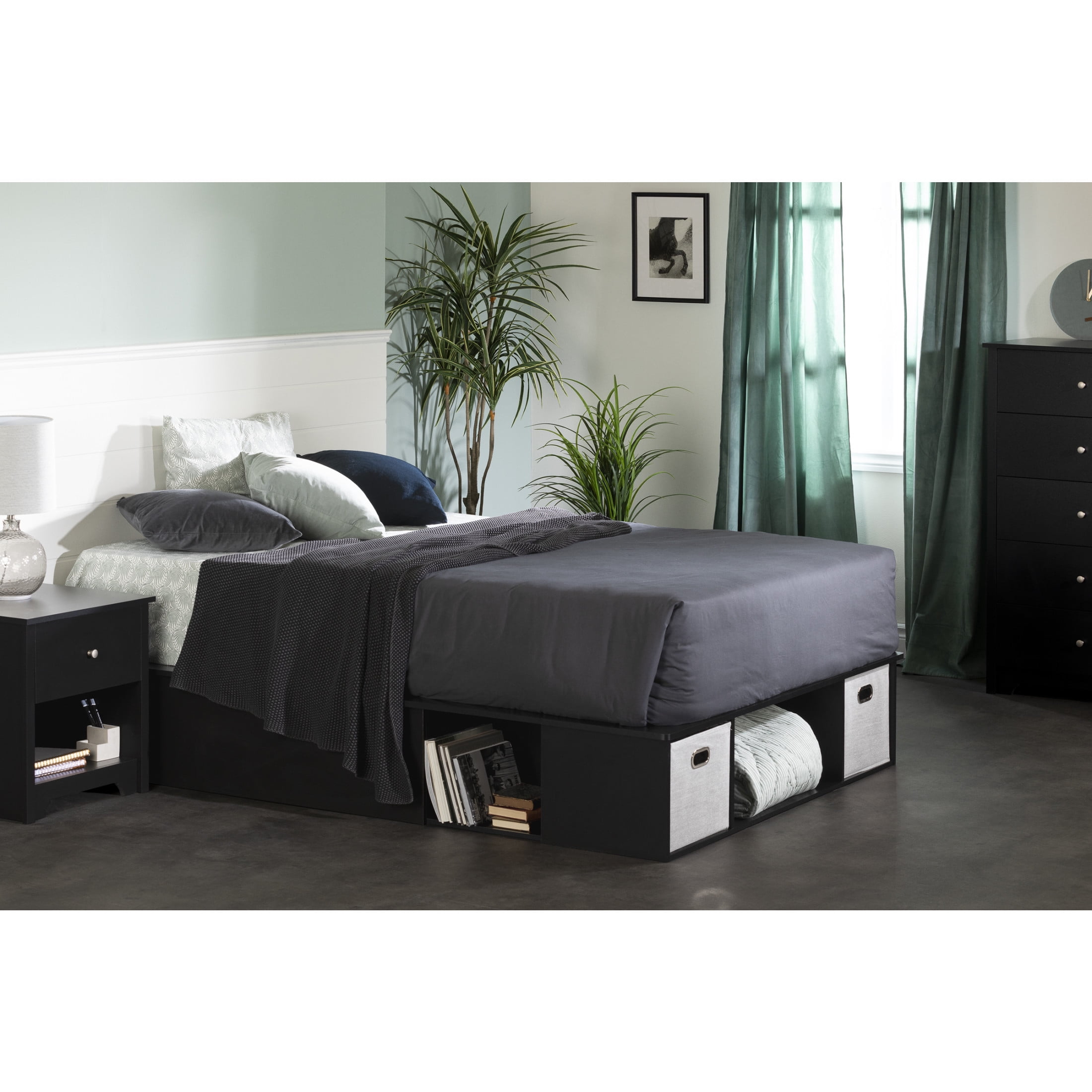 For REPLACING PARTS and HELP DURING ASSEMBLY, please contact us by phone at 1-800-290-0465, text message at 915-800-2833 (USA) (fees may apply), email at [email protected] or fill a part request form on . South Shore Vito, Contemporary Storage Bed, Pure Black OPEN STORAGE: We always need more storage! Use the 5 open spaces in this bed to organize your room and give your clothes a new home. BASKETS INCLUDED: This bed comes with two baskets, which will help you organize some of the things you store in the bed frame. MODERN STYLE: We love the clean, modern look of this platform bed, which is timeless and very trendy at the same time. OPTIONAL BEDSPRING: you don’t need a bedspring with this bed! With your mattress, you will have everything you need to sleep peacefully. South Shore beds can support a weight capacity of 250 lb for a twin size bed and 500 lb for a full, queen and king size bed Made in North America with non-toxic, laminated particleboard. Baskets included, mattress, headboard and accessories not included. 5 year quality warranty on furniture, 30-day satisfaction warranty on accessories. Any questions? Contact South Shore, available 7/7: 1-800-290-0465 or Assembly is required and tools are not included. All products come with a clear assembly document that will guide you through all steps. If you have any questions during the assembly do not hesitate to contact South Shore Furniture for immediate support. This item is shipped in 2 boxes. Box dimensions : 65.75″ (L) x 16.75″ (W) x 7″ (H) 114 lb – 73.25″ (L) x 16″ (W) x 4.25″ (H) 75 lb All our products meets or exceeds North American safety standards and our packaging are tested and certified to reduce the risk of damage during shipment. Clean with a dry cloth