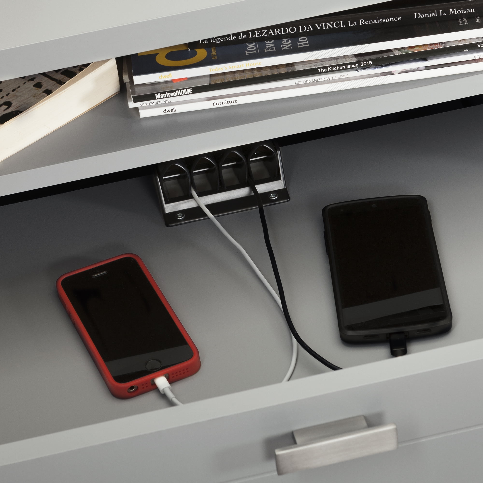 LIFESTYLE FURNITURE: The nightstand’s 2 deep drawers are finished with a convenient open storage compartment for books above and an open back with cable grip for easy wire management.