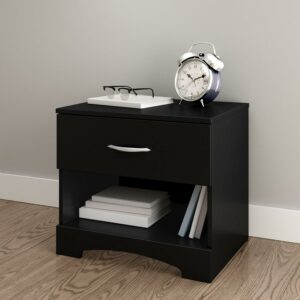 South Shore Step One 1-Drawer Nightstand – End Table with Storage Black