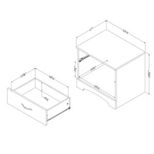 For REPLACING PARTS and HELP DURING ASSEMBLY, please contact us by phone at 1-800-290-0465, text message at 915-800-2833 (USA) (fees may apply), email at services@South Shore Furniture.com or fill a part request form on https://form.jotform.com/South Shore Furniture/replacement-form South Shore SoHo 1-Drawer Nightstand Black SLEEK BEDROOM STORAGE: Keep your personal items organized and out of sight at your bedside with this elegant and practical nightstand. MODERN DESIGN: This bedside nightstand with contemporary, clean lines and contrasting metal handles will blend with any bedroom décor or furniture. PRACTICAL FURNITURE: The nightstand features a deep drawer and an open, easy-access storage space which makes it convenient for storing books, glasses or any type of personal items you may need next to you in your bedroom. 5-YEAR LIMITED WARRANTY: South Shore is proud to stand behind this 1-drawer nightstand – end table with storage with an exclusive 5-year limited warranty. Shop with confidence knowing your purchase is always covered. EASY ASSEMBLY INSTRUCTIONS: All products come with a clear assembly document that will guide you through all steps. If you have any questions during the assembly do not hesitate to contact South Shore Furniture for immediate support.This item it shipped in 1 box Wipe with a dry cloth This product is made in North America with Laminated Particleboard BOX INFORMATION: Box #1 : 29.5″ D x 18″ W x 4.5″ H, 33 lb.