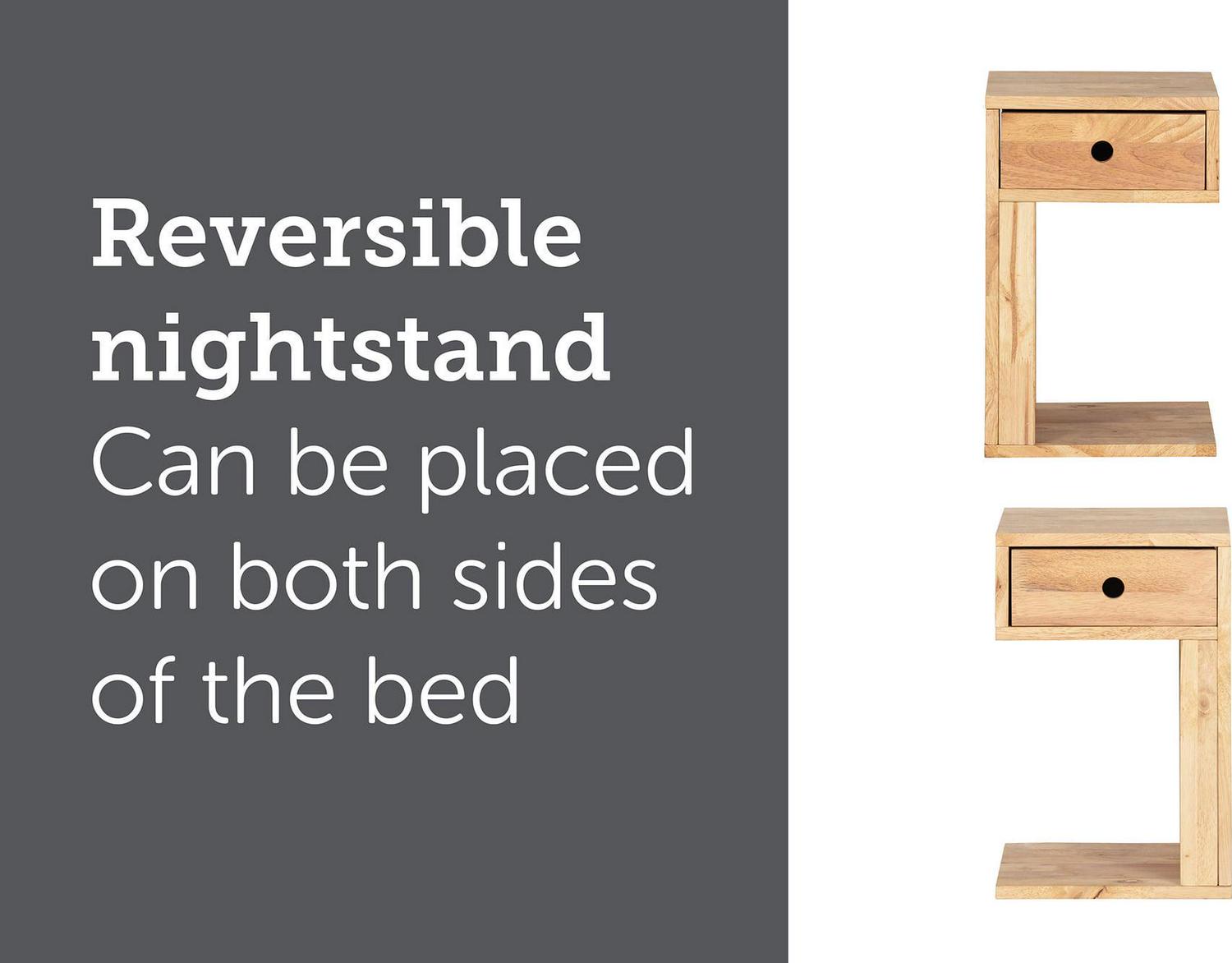 – REVERSIBLE: This night stand can be adapted to the layout of the room! When assembling it, you get to decide on which side you want the open space at the bottom: left or right.