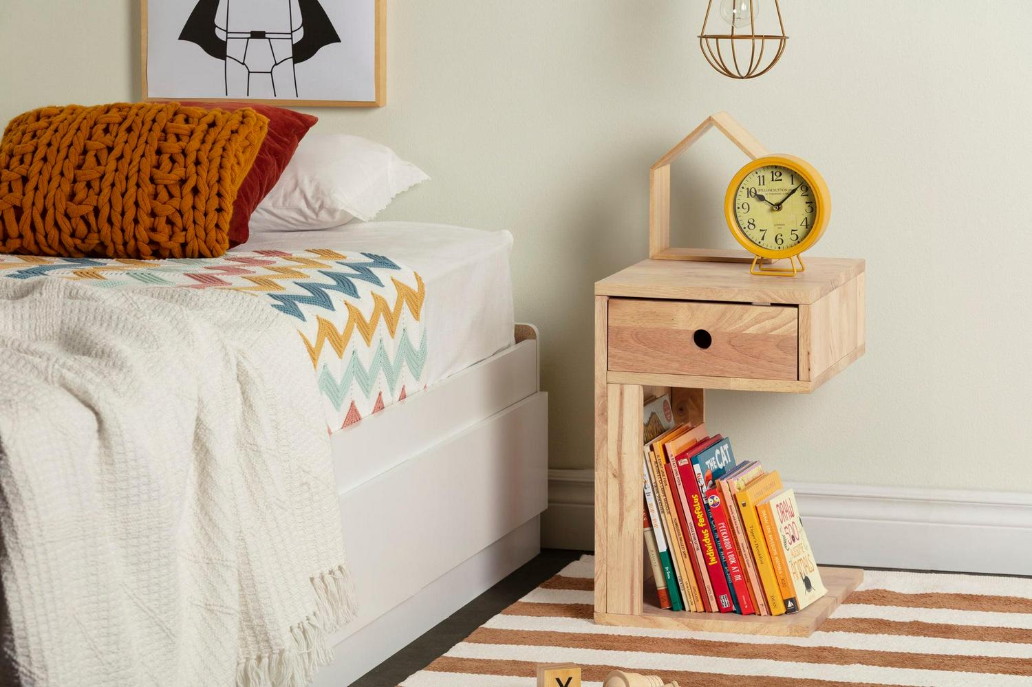 This night stand was made from genuine natural rubber tree wood. Its unique look, with knots and authentic color variations scattered throughout, will add a zany touch of charm to your kid s room.