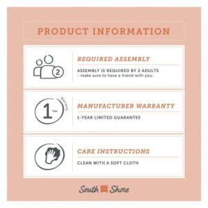 - 1-year limited warranty. Any questions Contact South Shore, available 7/7: 1-800-290-0465 or www.southshorefurniture.com