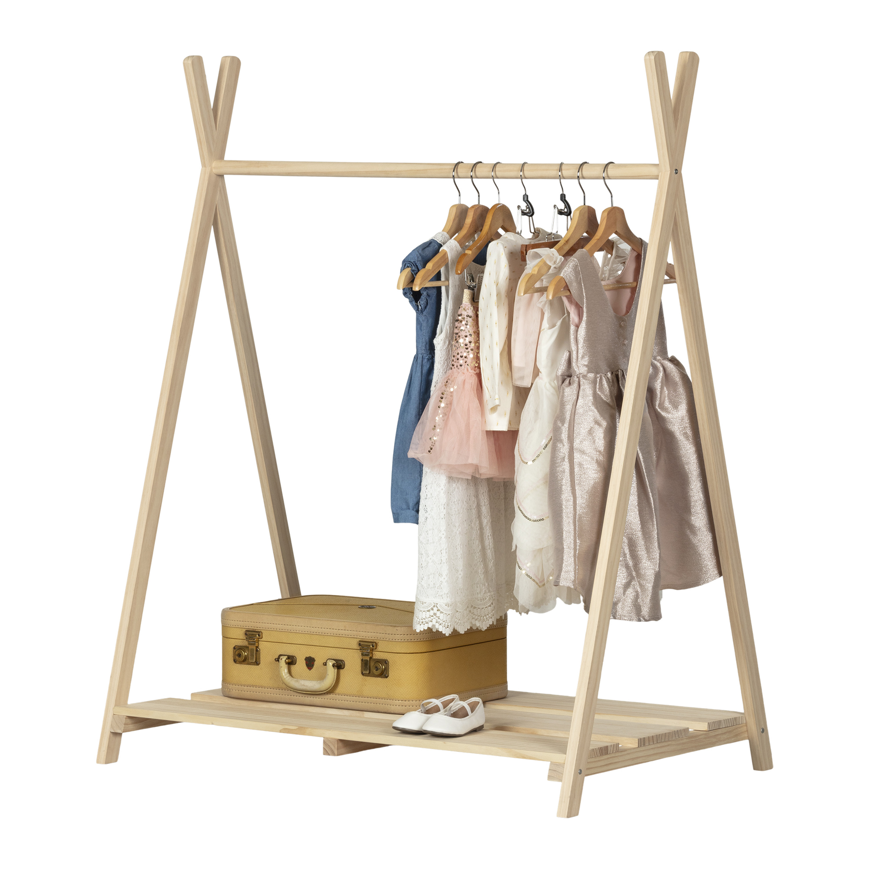 For REPLACING PARTS and HELP DURING ASSEMBLY, please contact us by phone at 1-800-290-0465, text message at 915-800-2833 (USA) (fees may apply), email at [email protected] or fill a part request form on . South Shore Sweedi, Scandinavian Scandinavian Clothes Rack for Kids, Natural Wood OPEN STORAGE: This open wardrobe showcases your little one’s nicest clothes. Use the bottom surface to store boots, shoes, or any other accessories that still need a home. FOR THE KIDS: This wardrobe, especially made for 3 to 7 year olds, is just the right height for them to reach without help – the way adults do. TIPI LOOK: The playroom is the place to let loose and go crazy… and that’s what we thought of when we created this Scandinavian wardrobe: it’s a fun, playful piece that’ll add a touch of joy to your decor. WOOD STRUCTURE: This wardrobe is made of a solid natural wood structure, which guarantees its durability. Made in China. Accessories not included. 5-year limited warranty. Any questions? Contact South Shore, available 7/7: 1-800-290-0465 or Assembly is required and tools are not included. All products come with a clear assembly document that will guide you through all steps. If you have any questions during the assembly do not hesitate to contact South Shore Furniture for immediate support. This item is shipped in 1 box. Box dimensions : 54″ (L) x 8.5″ (W) x 5.25″ (H) 18 lb All our products meets or exceeds North American safety standards and our packaging are tested and certified to reduce the risk of damage during shipment. Spot clean with damp cloth.