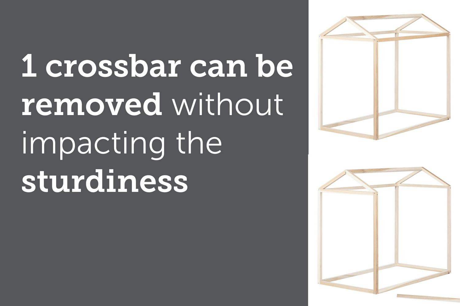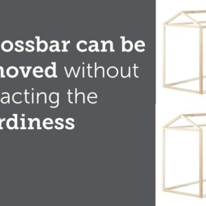 – REMOVABLE CROSSBAR: One of the crossbars can be removed so you can play with your kids without hitting your head. The sturdiness of the furniture won’t be affected in any way.