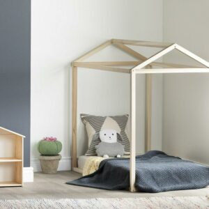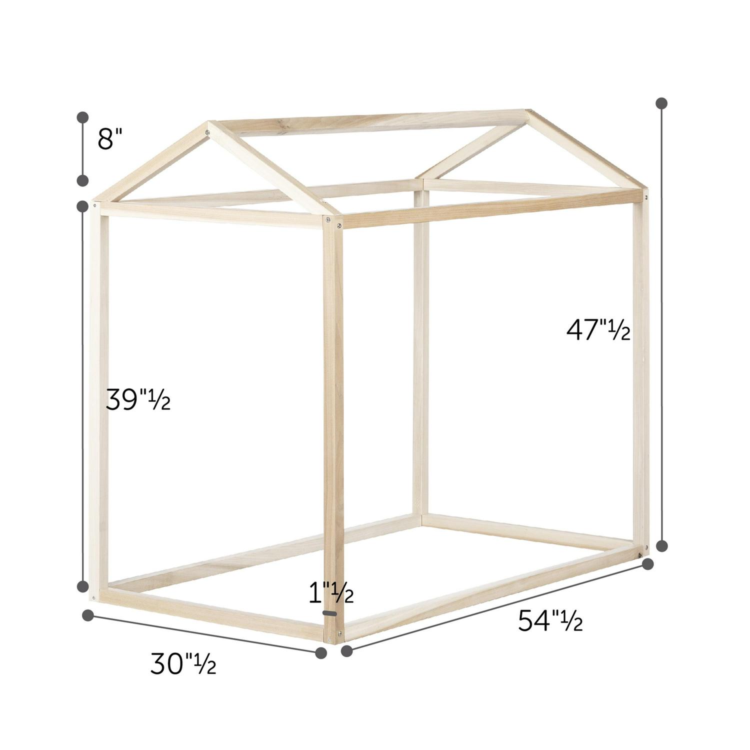 This house bed is made of solid natural poplar. What about your little prince or princess s safety No worries this piece has been fully tested! The bed, which looks like a teepee, just needs a standard crib mattress. So you can reuse the one baby slept on before just put it directly on the floor, inside the wood frame.