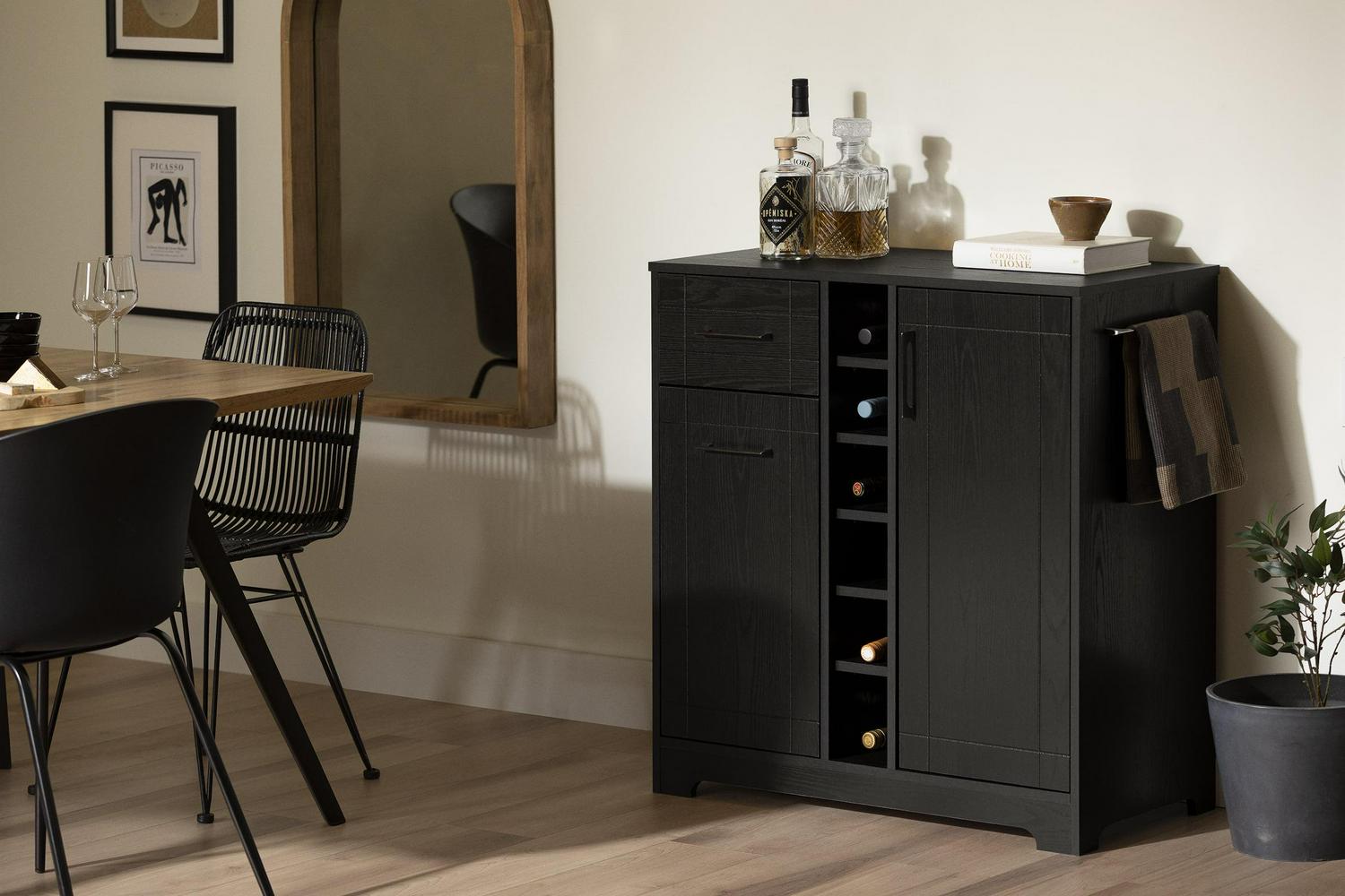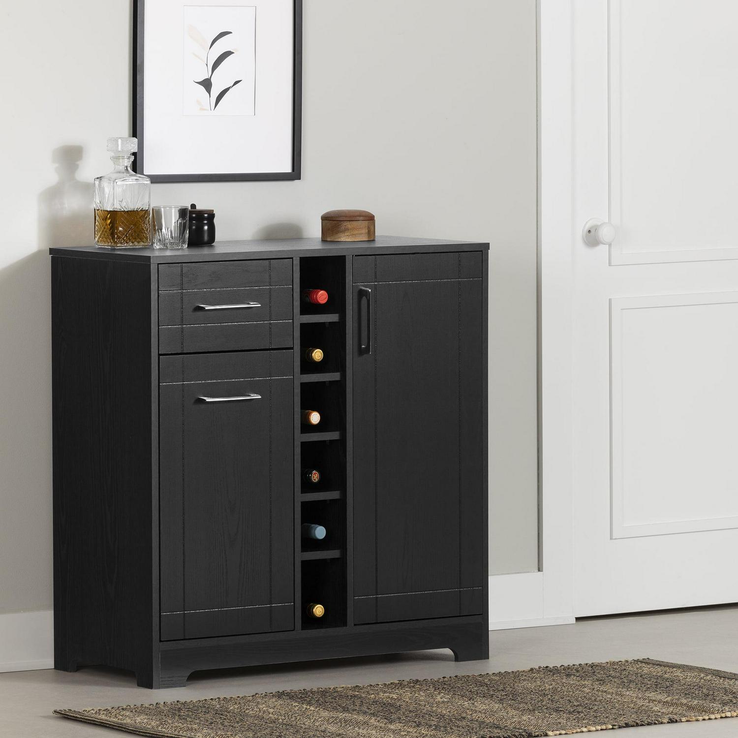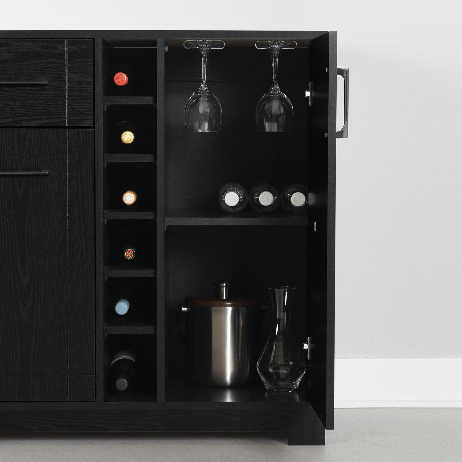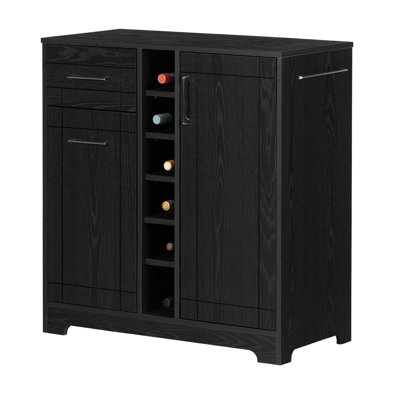 - South Shore Vietti, Contemporary Bar Cabinet and Bottle Storage, Black Oak