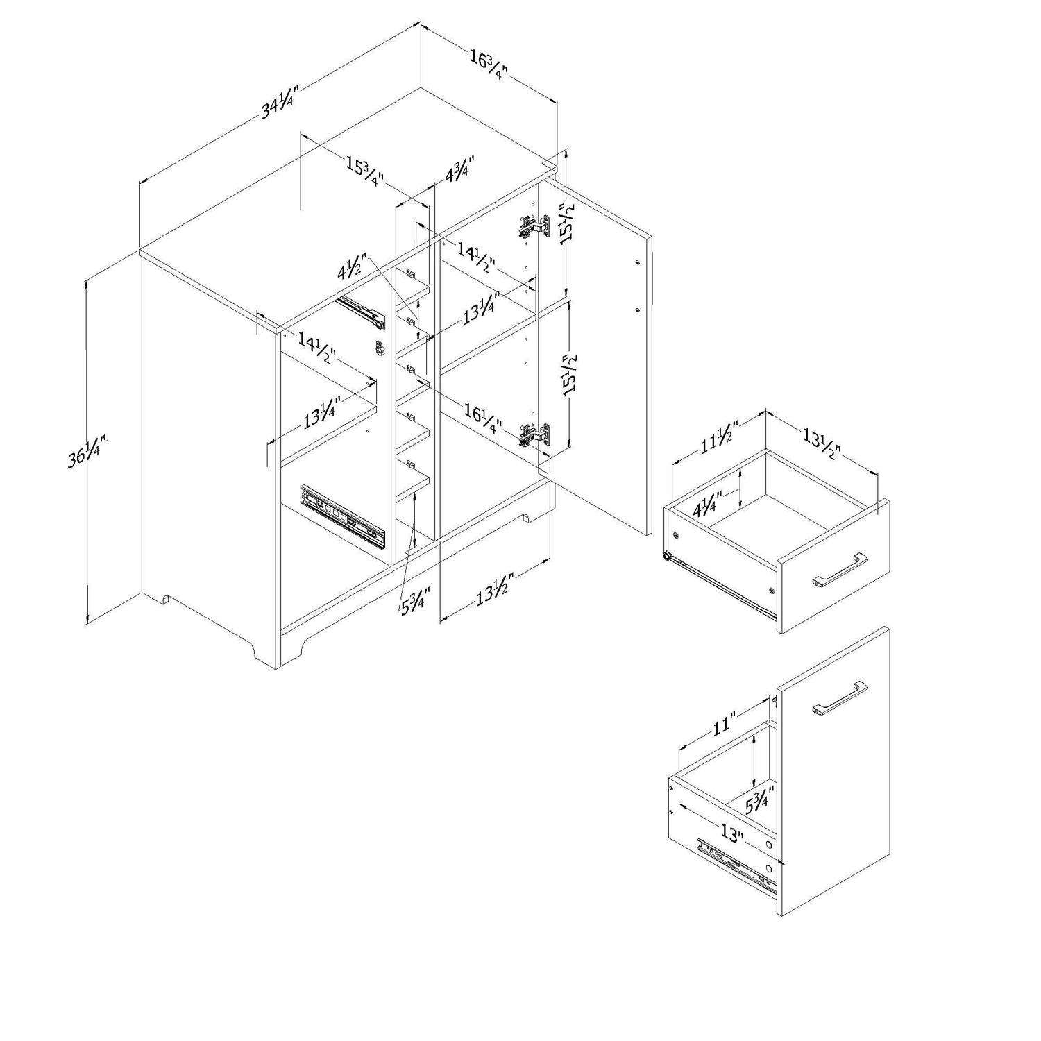 - Assembled Product Dimensions (L x W x H): 16.75 x 34.25 x 36.25 Inches