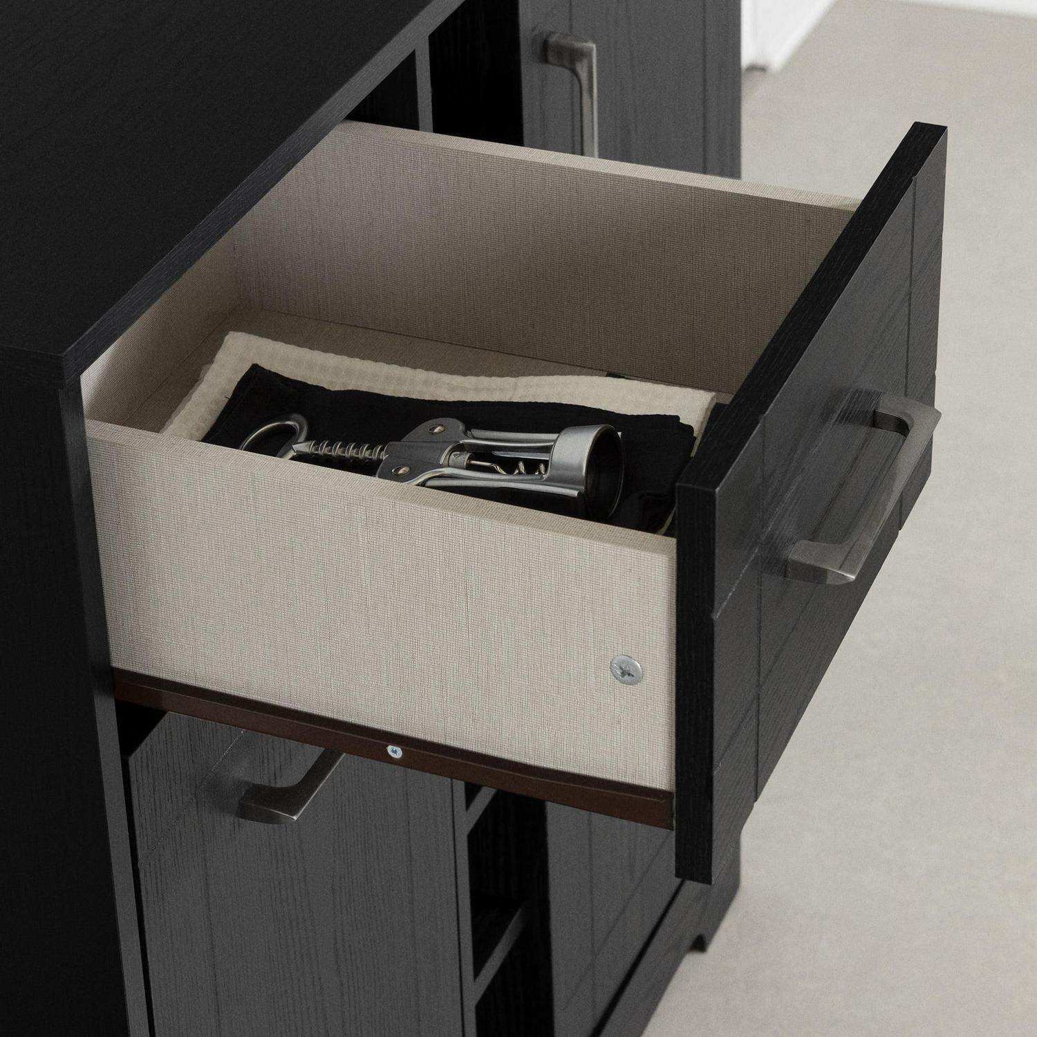 – STORAGE DRAWER FOR BOTTLES: The drawer is just the right depth for arranging your wine and liquor bottles.