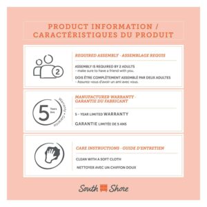 - 5-year limited warranty. Any questions Contact South Shore, available 7/7: 1-800-290-0465