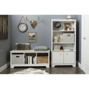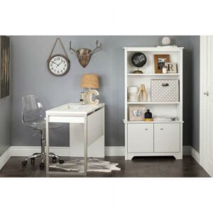 South Shore Vito, Contemporary 3-Shelf Bookcase with Doors, Pure White