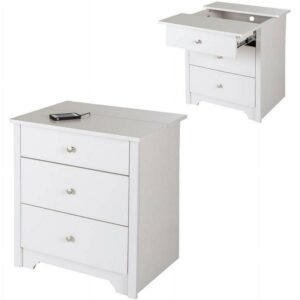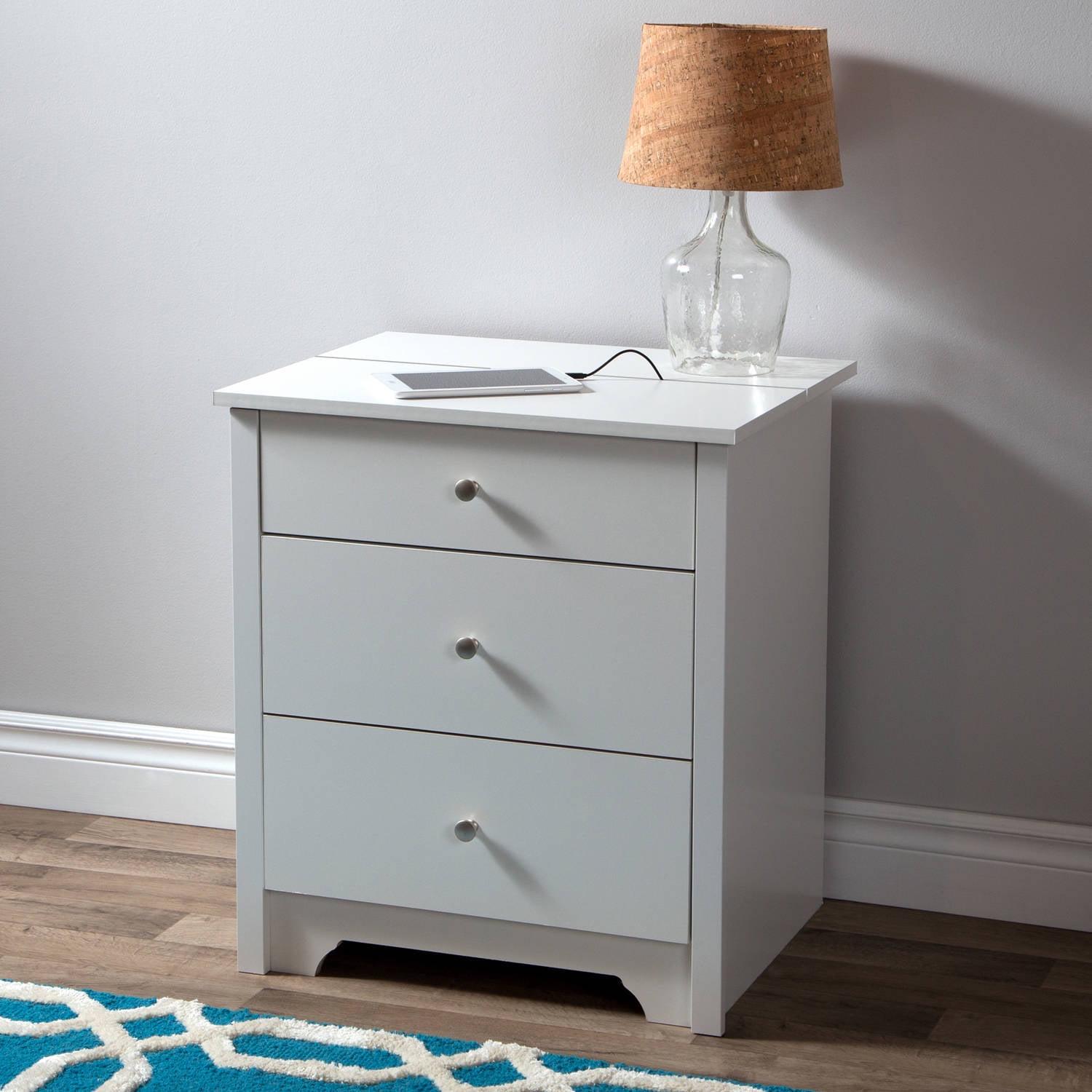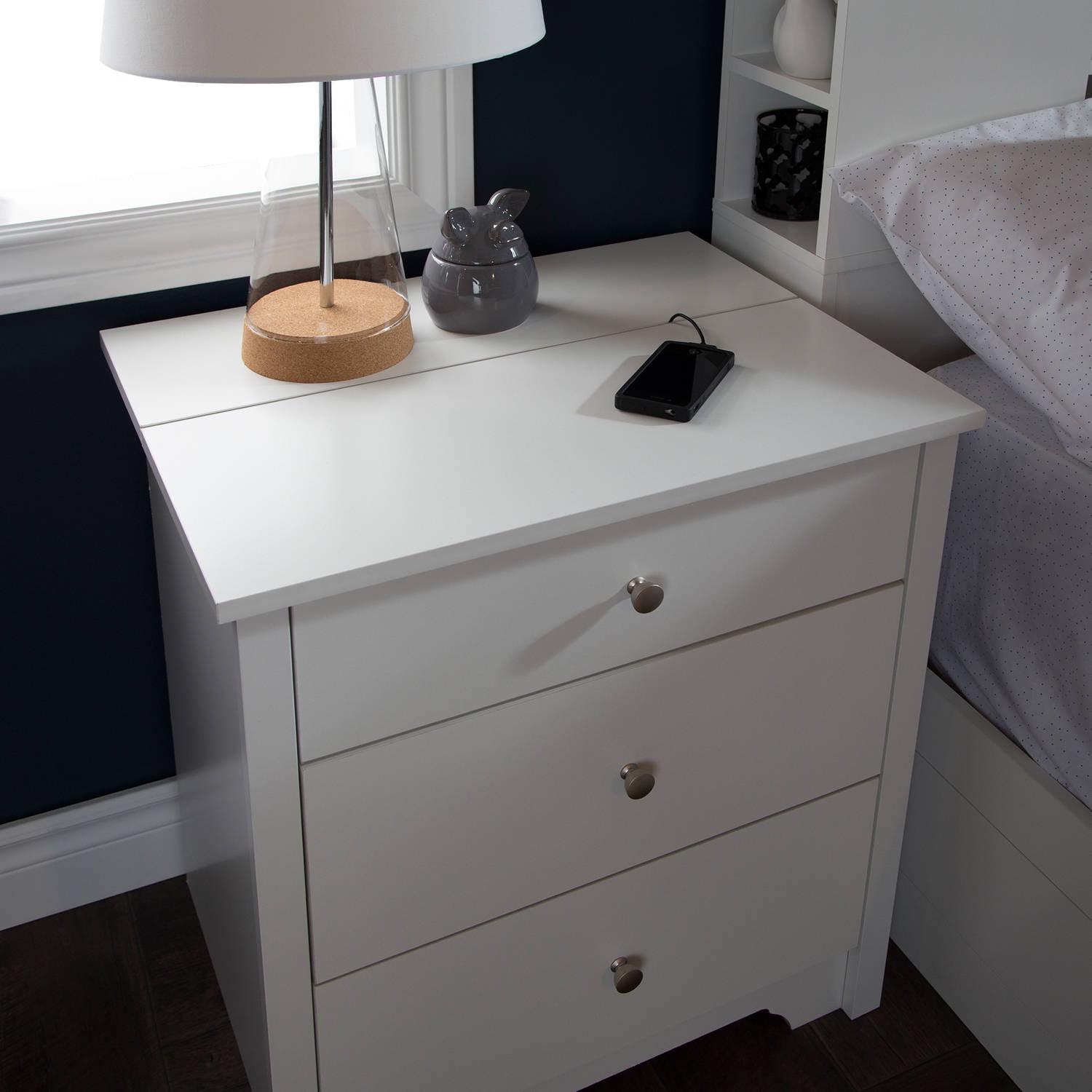 South Shore Vito Nightstand with Charging Station and Drawers White