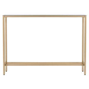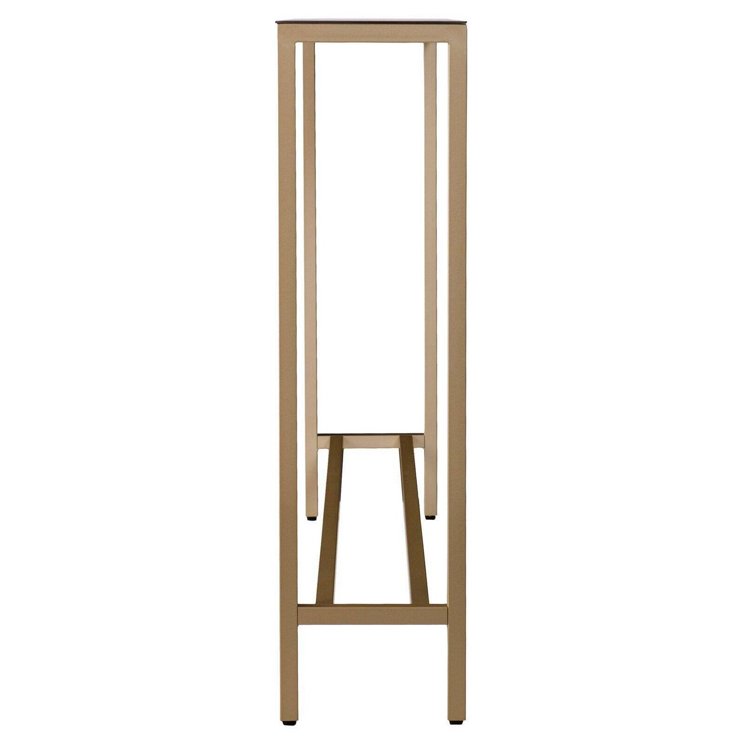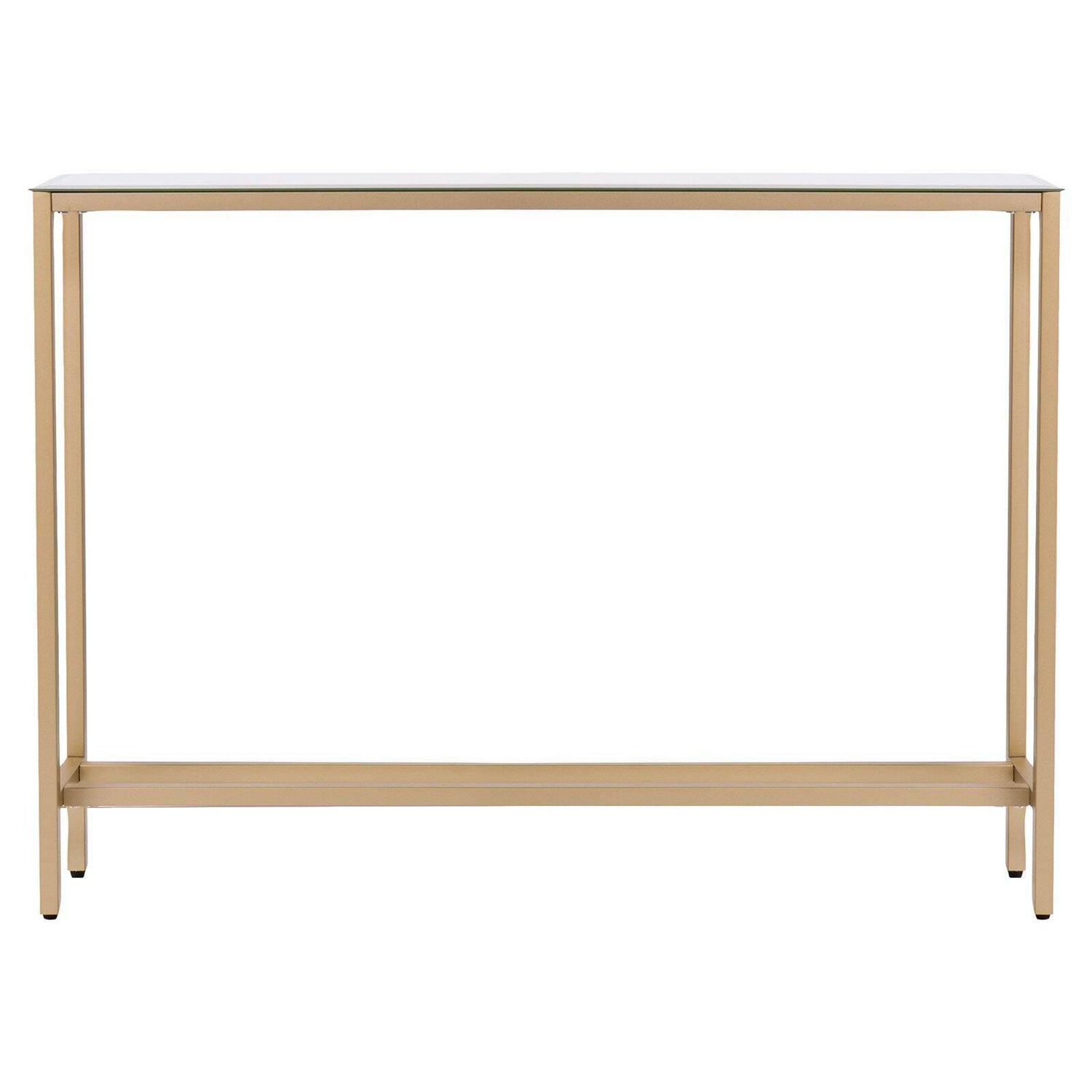 There are lots of ways to add a sleek table to your space, but our favorite is the Southern Enterprises Darrin 36 in. Console Table. This unique piece is made from a base of sleek, square-tube metal with a powder-coated finish in muted gold. Across the top is a thick mirror with wide, beveled edges. The mirror is backed with engineered wood that gives it a strong, stable structure. This also allows you to use the table for purposes ranging from the decorative to the practical.
