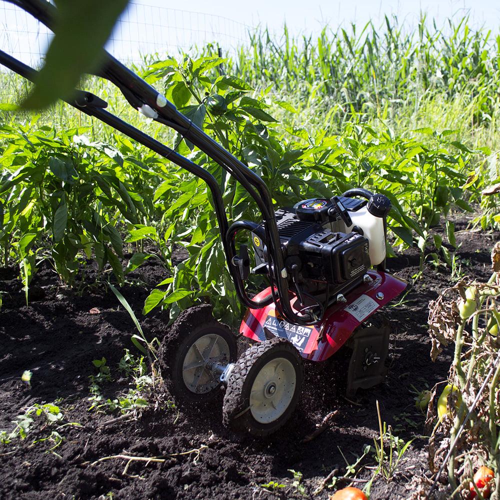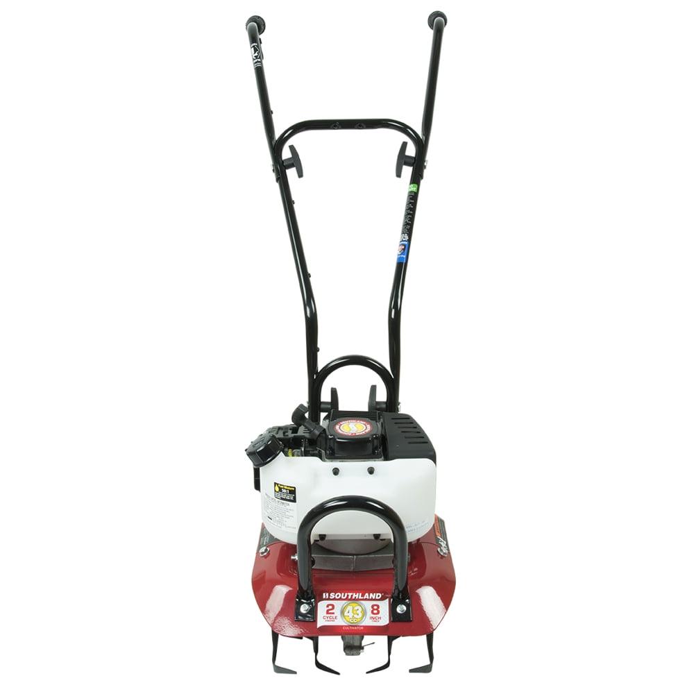 Perfectly prep your soil with the Southland 10 in. 43cc Gas 2-Cycle Cultivator. This cultivator is designed to help you accomplish a variety of cultivation and tilling tasks around your home and property. It is built for dependable, trouble free performance and is backed by an extensive service network to keep the cultivator running strong for years to come. The adjustable tilling widths of 6-10 in. and up to 5 in. tilling depth make easy work of weeding and aerating soil. Equipped with 7 in. rear wheels, this cultivator is easy to maneuver around lawns and gardens. The comfortable design allows you to work until the job is done. A 3-piece foldable handle allows for convenient storage and a front carry handle provides maximum portability.