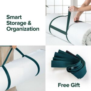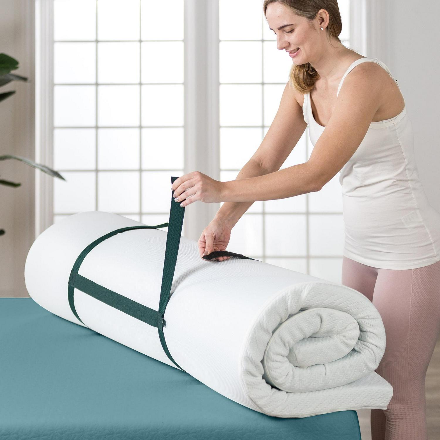 If you’re looking for cool, calm, and collected sleep, look no further than the Ultra Cooling Gel Memory Foam Mattress Topper. A layer of Ultra-comfortable gel infused memory foam provides relief to your joints and pressure points and increases air circulation to allow body heat to escape so you’ll wake up refreshed and free of aches and pains. You won’t have to compromise on a cooler or comfortable night’s sleep, as this topper provides both. A removable and washable cover with cooling treatment makes this topper cool to the touch for a final layer of temperature relief you’ve been looking for. And don’t worry about the topper sliding around with the anti-skid bottom to keep it firmly in place. If you use your topper temporarily for guests, keep it rolled up safe and sound with the included handy separate storage strap. With this mattress topper, you’ll be sleeping as cool as a cucumber each and every night.