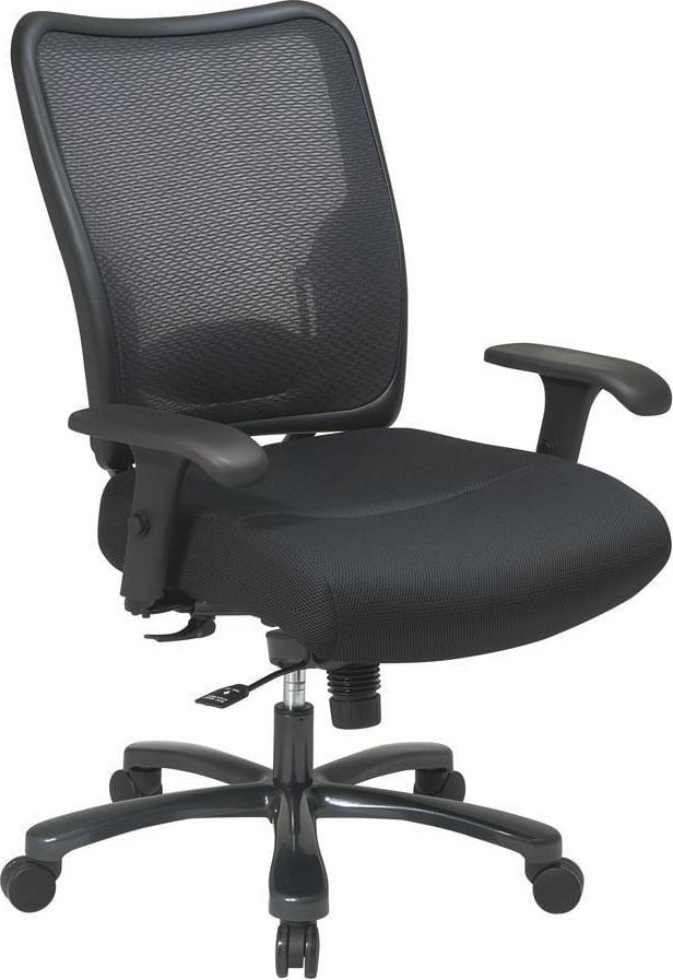 The Big and Tall chair from SPACE Seating offers personalized ways to customize comfort no matter how much you work. A dual AirGrid breathable back keeps you cool and relaxed while the adjustable lumbar feature supports your posture. Other features include one-touch pneumatic height adjustment, 2-way adjustable arms with PU pads, a gunmetal finish base, and dual wheel carpet casters. A thick padded mesh seat has both size and features to alleviate pressure and make your work life easier.