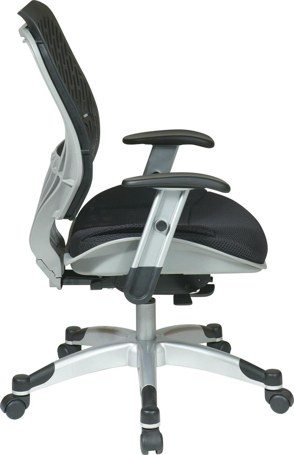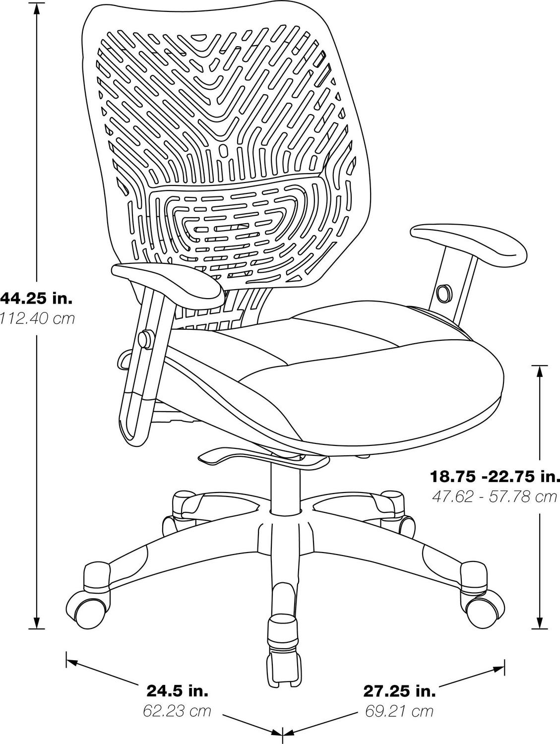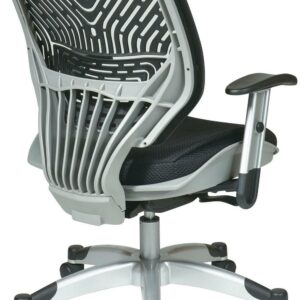 Unsurpassed up-to-the-minute ergonomic design arrives in the form of the Revv Series Self Adjusting SpaceFlex Back Chair with Self Adjusting Mechanism. Intelligently outfitted with a firm yet flexible cut out style contoured back, the backrest of this ingenuitive seating solution provides for optimal support while sporting cutting edge style. Brilliantly constructed with a thickly padded 2-layer mesh seat and engineered with pressurized seat height adjustment, the easily adjustable seat wicks away moisture and allows for quick and simple seat positioning. The genius tilt tension function allows you to recline with perfect balance and support while also providing an anti-kickback functionality when arising from a seated position. Height adjustable padded arms allow for a place to rest your hardworking hands and a heavy duty fully finished base with end caps and dual wheel carpet casters allow you to glide effortlessly while protecting the base from scuffs and scratches. Combine all these features with the eco-friendly GreenGuard certification and you have a perfect work chair that is destined to be the office favorite for years to come.