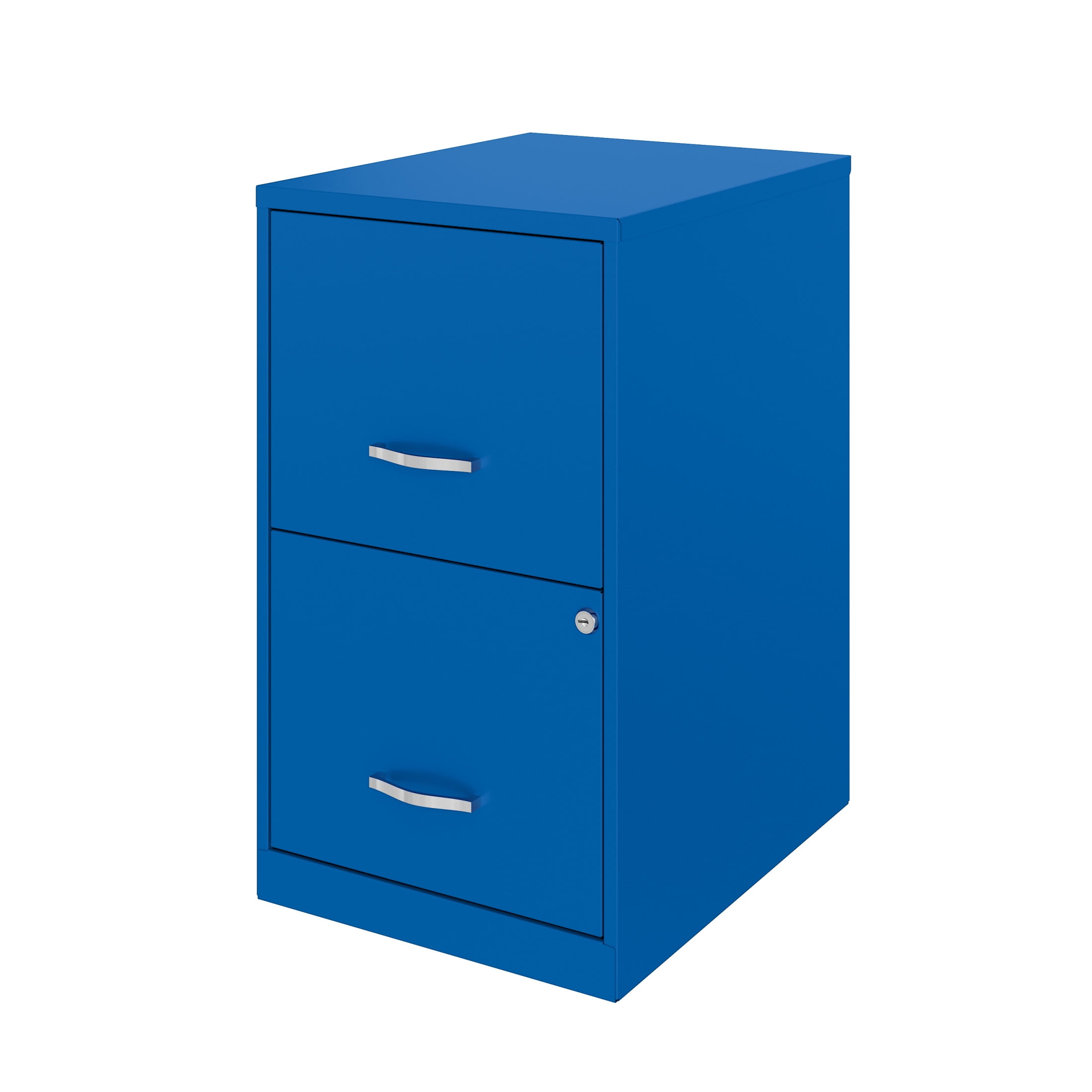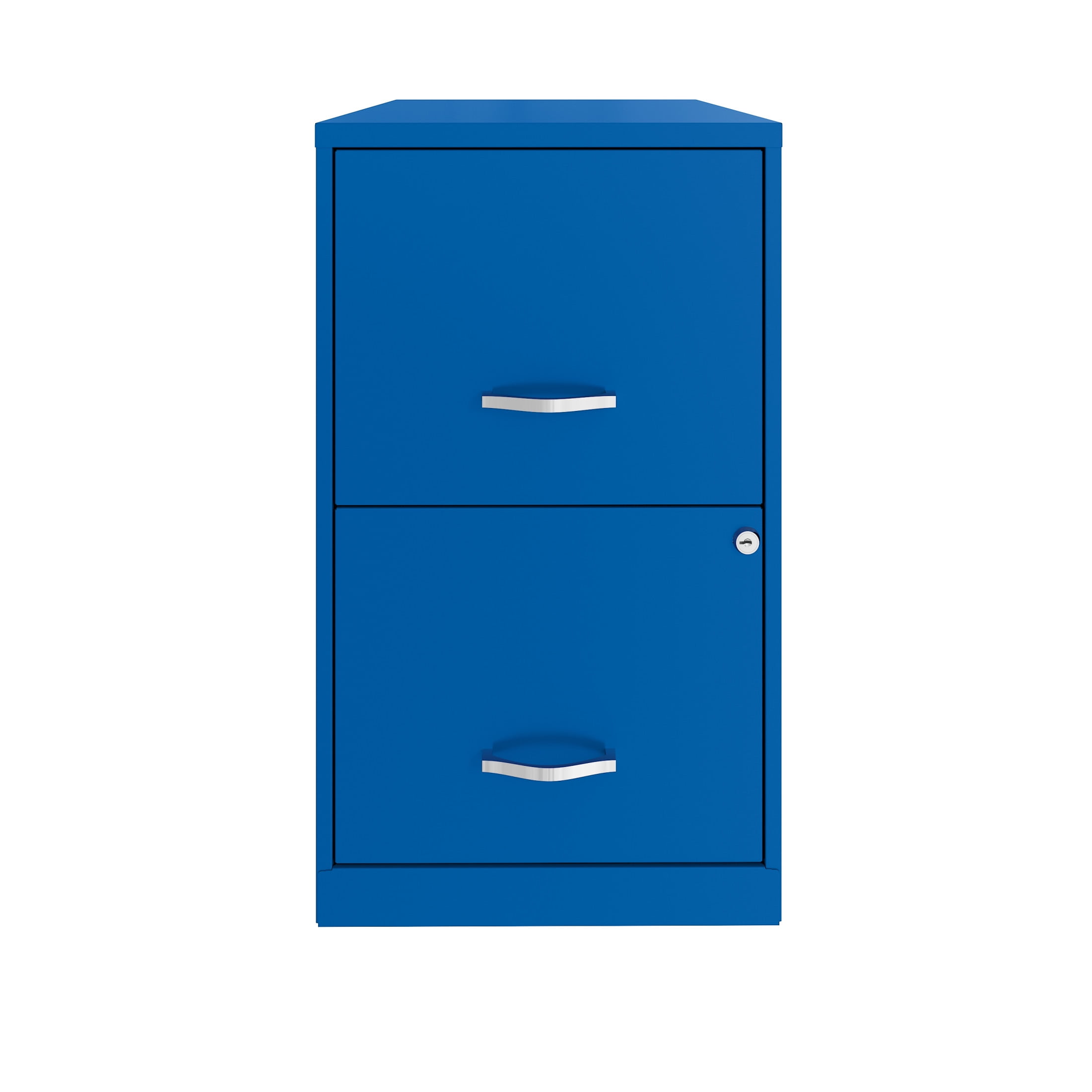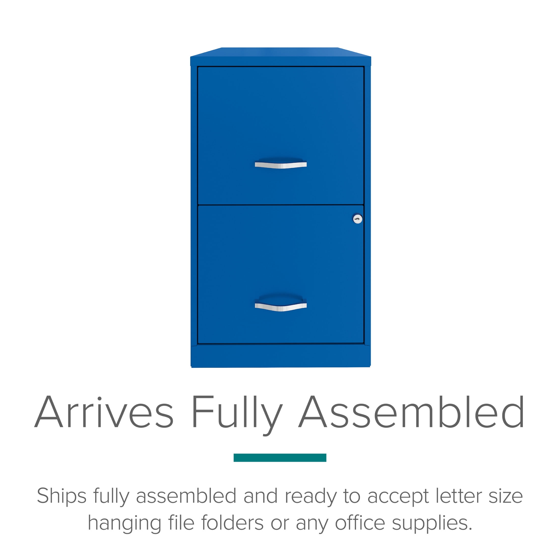 Vertical file drawers accommodate letter-size hanging file folders Full high-side drawers provide storage solutions for other office essentials Smooth patented glide suspension drawer slides Cam lock secures both drawers Three-quarter drawer extension Tucks under most work surfaces and office desks. Painted steel surface is non-porous and easy to clean Fully assembled welded cabinet. Assembly of the handles required Space Solutions 18″ Deep 2 Drawer Letter Width Vertical File Cabinet, Classic Blue