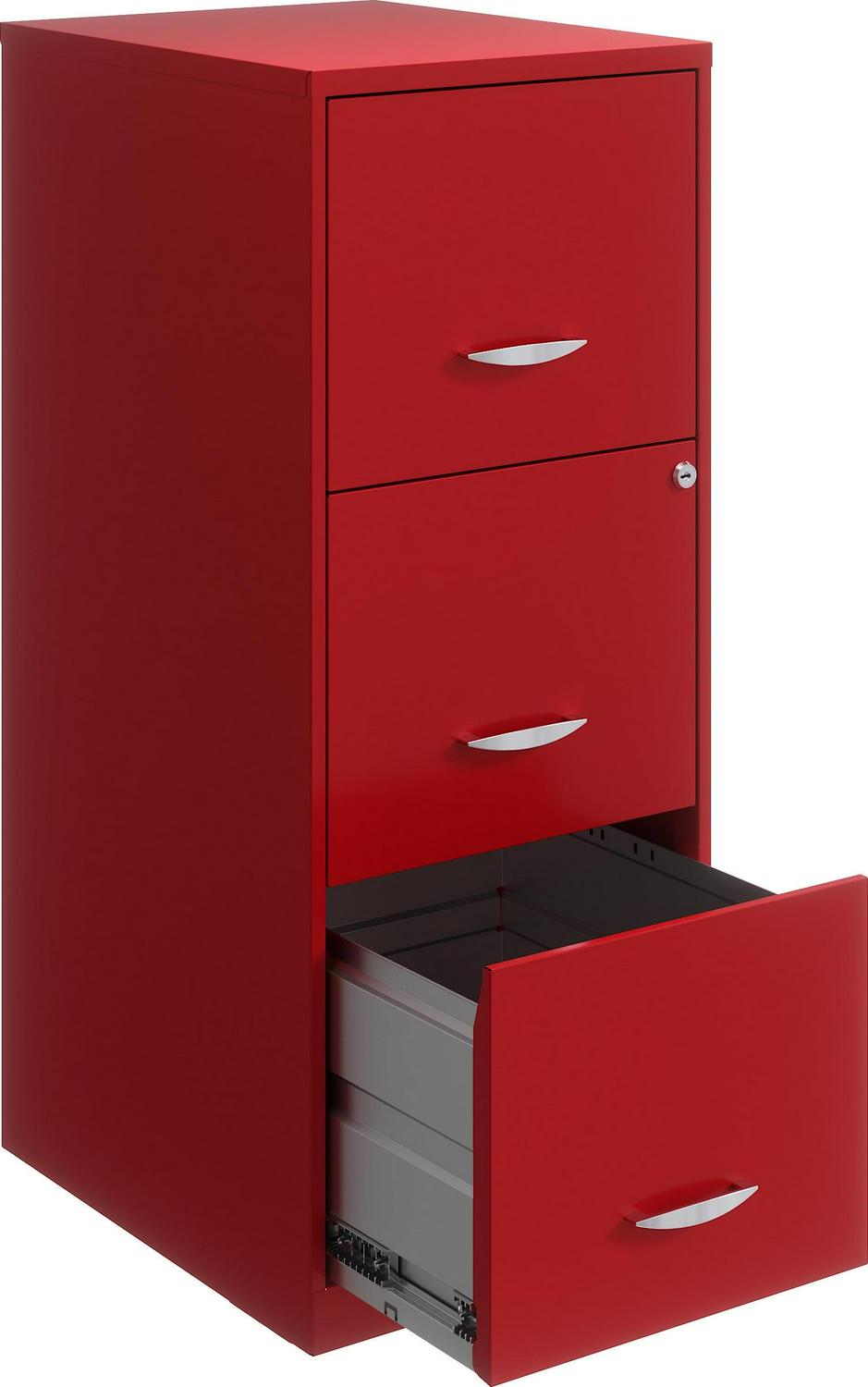 Space Solutions 18 Deep 3 Drawer Smart Letter Width Vertical File Cabinet, Red