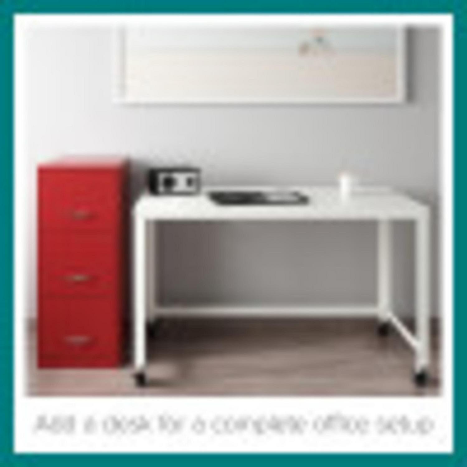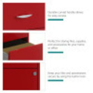 The Three Drawer Metal Vertical File Cabinet is designed for smaller professional offices or home office use. The cabinet features durable steel construction and a smart, efficient design that works well in small spaces. Each drawer features high-sides to accommodate letter-sized hanging files. The drawers are also a perfect storage solution for other office essentials. Using a patented glide suspension, the drawer slides open and close smoothly with a three-quarter drawer extension to prevent tipping. In addition, you can keep your files and possessions secure by using the built-in lock for the top two drawers. The painted steel surface is non-porous and easy to clean. Bring storage and organization to your home or office with this stylish three-drawer file cabinet. Your office supplies and files will always be organized and within reach. Color: Lava Red