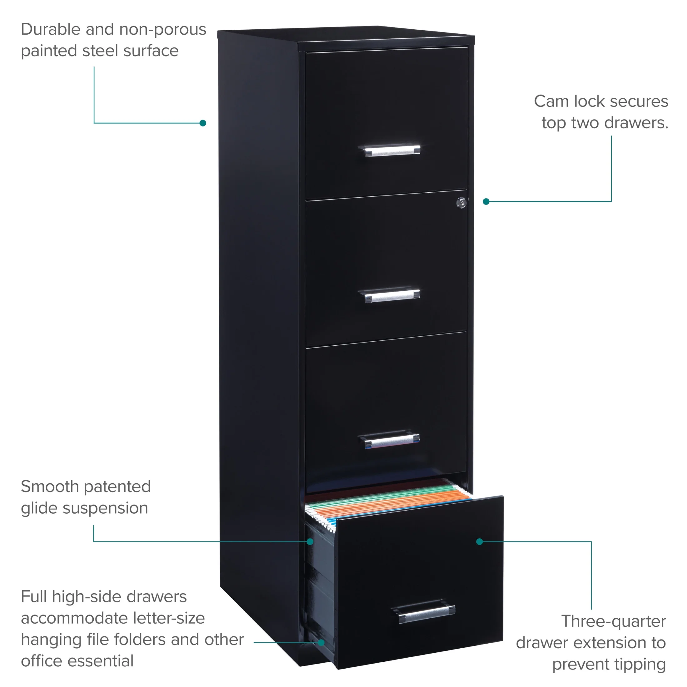 Space Solutions 18″ Deep 4 Drawer Smart Letter Width Vertical File Cabinet, Black