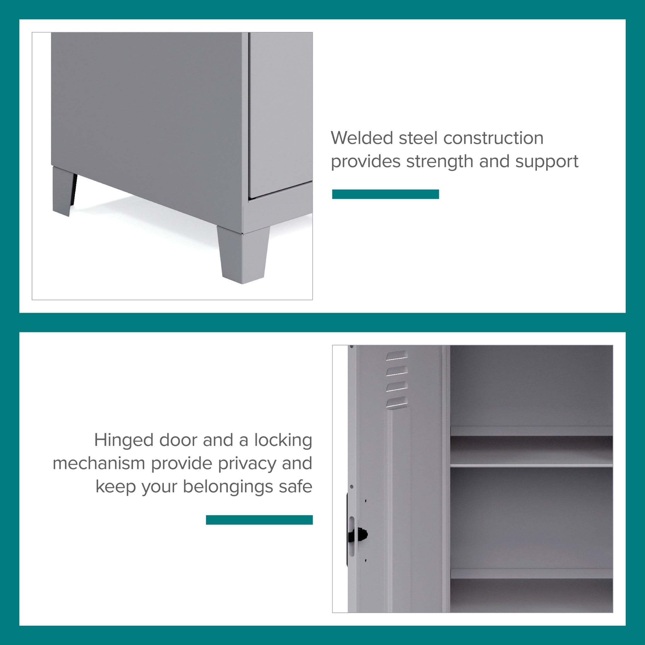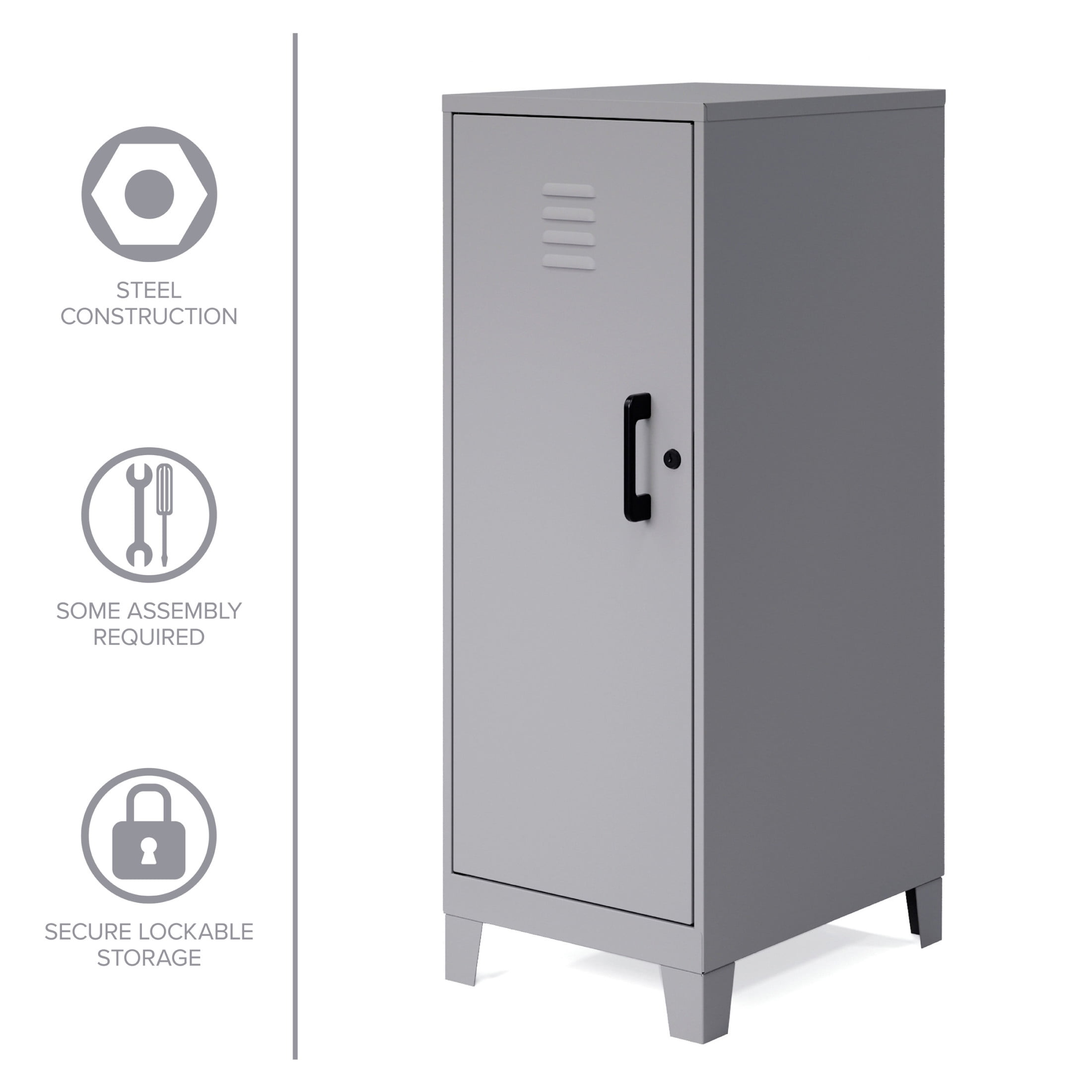 The versatile design of our personal locker metal cabinet makes it suitable for home office and professional office use. The stylish and modern look will fit right in with your offices, classrooms, playrooms, basements, and garages. It adds a unique, industrial touch to your workspace or living space. This storage and organizational locker is made of sturdy and durable welded steel construction that provides long-lasting strength. It’s made with 30% recycled steel that makes it an eco-friendly storage solution. The non-porous surface of our storage locker is easy to clean. All you need is a damp cloth! The locker will be shipped to you fully assembled so you can get organized right away! Color: Arctic Silver