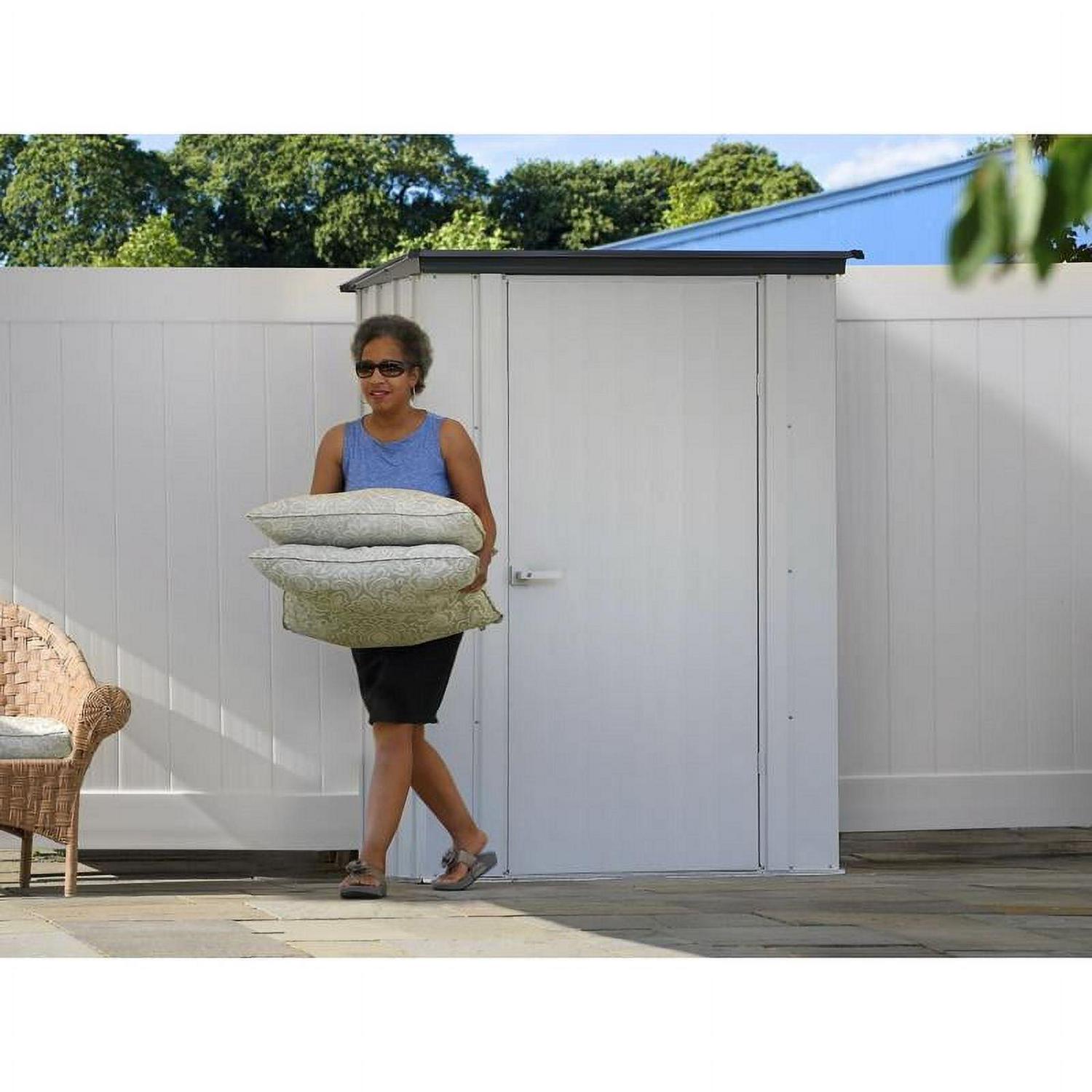 The Arrow 4×3 Spacemaker Patio Steel Storage Shed is a perfect size to store all those items you use on your deck and patio. Store your cushions, serving carts and much more when not in use, keeping them safe from mother nature. This galvanized steel shed comes with globally sourced material.
