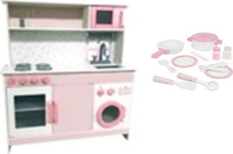 Spark. Create. Imagine. Deluxe Wooden Play Kitchen with Accessory Play Set- Pink