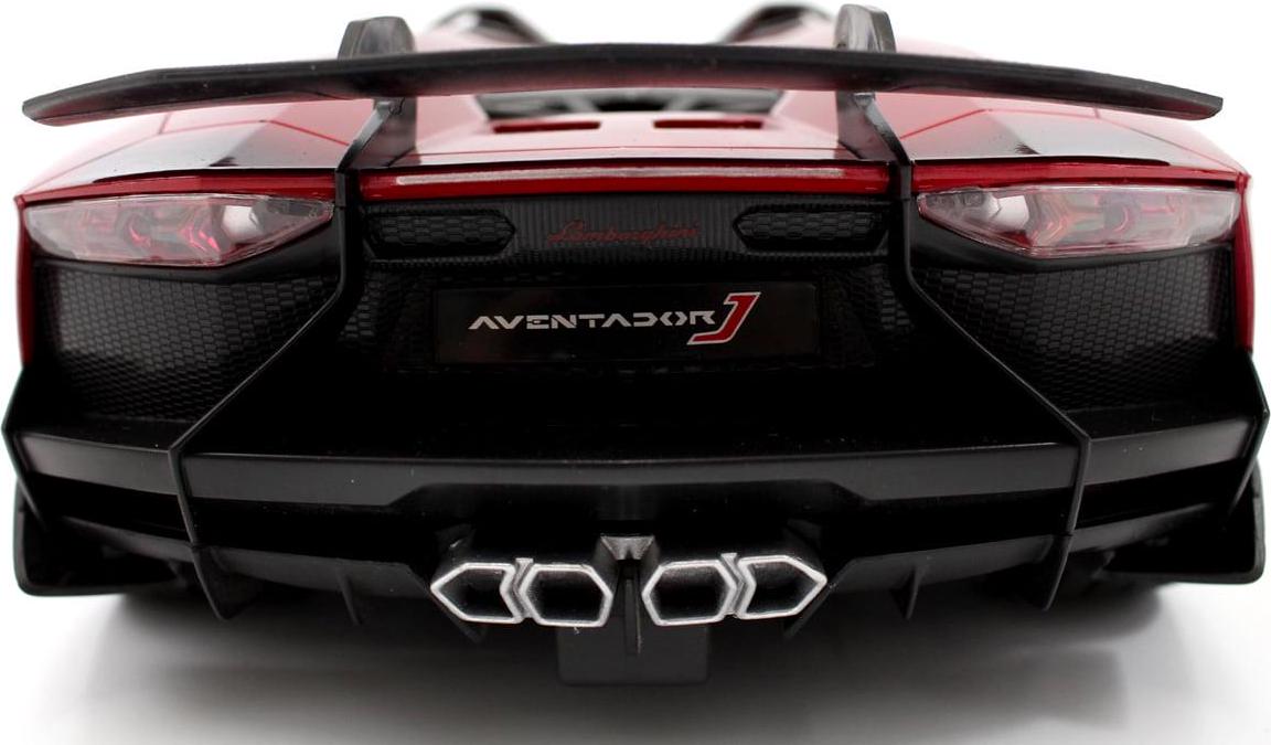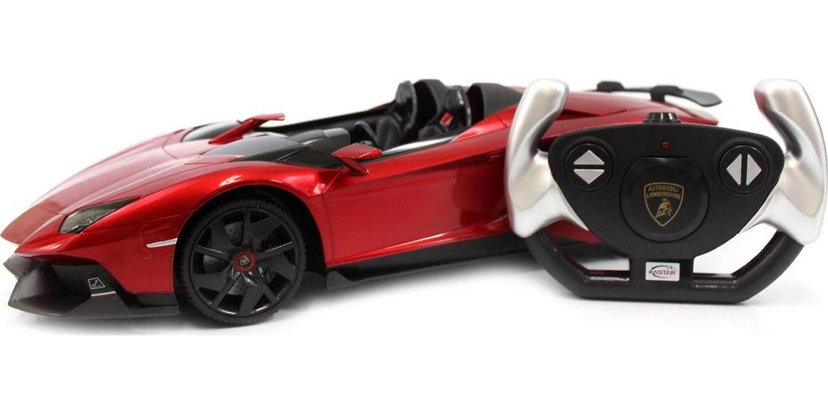 Description: Official licensed model RC car of the Lamborghini Aventador J SuperCar. 1/12 Scale. Features: Official Licensed Model RC Car Independent Spring Suspension System Full Function Radio Control: Forward, Reverse, Stop, Left; Right Functional Ultra Bright Headlights Custom Lamborghini Stamped Rims Wrapped in Rastar Rubber Grip Tires Car Requires 5 AA Batteries (not included) Remote Requires 9V Battery (not included) Package Contents: Model Car Remote Recommended Age:3+