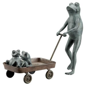 SPI Frog Family with Wagon Planter Aluminum Garden Sculpture