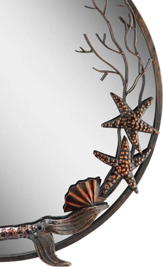 Enhance your living space with this exquisite wall-mounted mirror featuring a captivating mermaid frame. Constructed from durable metal and glass, the mirror effortlessly attaches to the wall using just a single nail or screw. With dimensions of 22.5 inches in length, 22.5 inches in height, and 2 inches in depth, it provides an elegant and substantial addition to your decor. The mirror is adorned with a rust-colored patina, which imparts a timeless, antique charm to the piece. It serves as a striking accent in any room, but particularly thrives in spaces with beach or nautical decor themes. Whether you’re striving to evoke a coastal ambiance or simply seeking to introduce a unique focal point, this mermaid-framed mirror is a superb choice for elevating the aesthetics of your home.