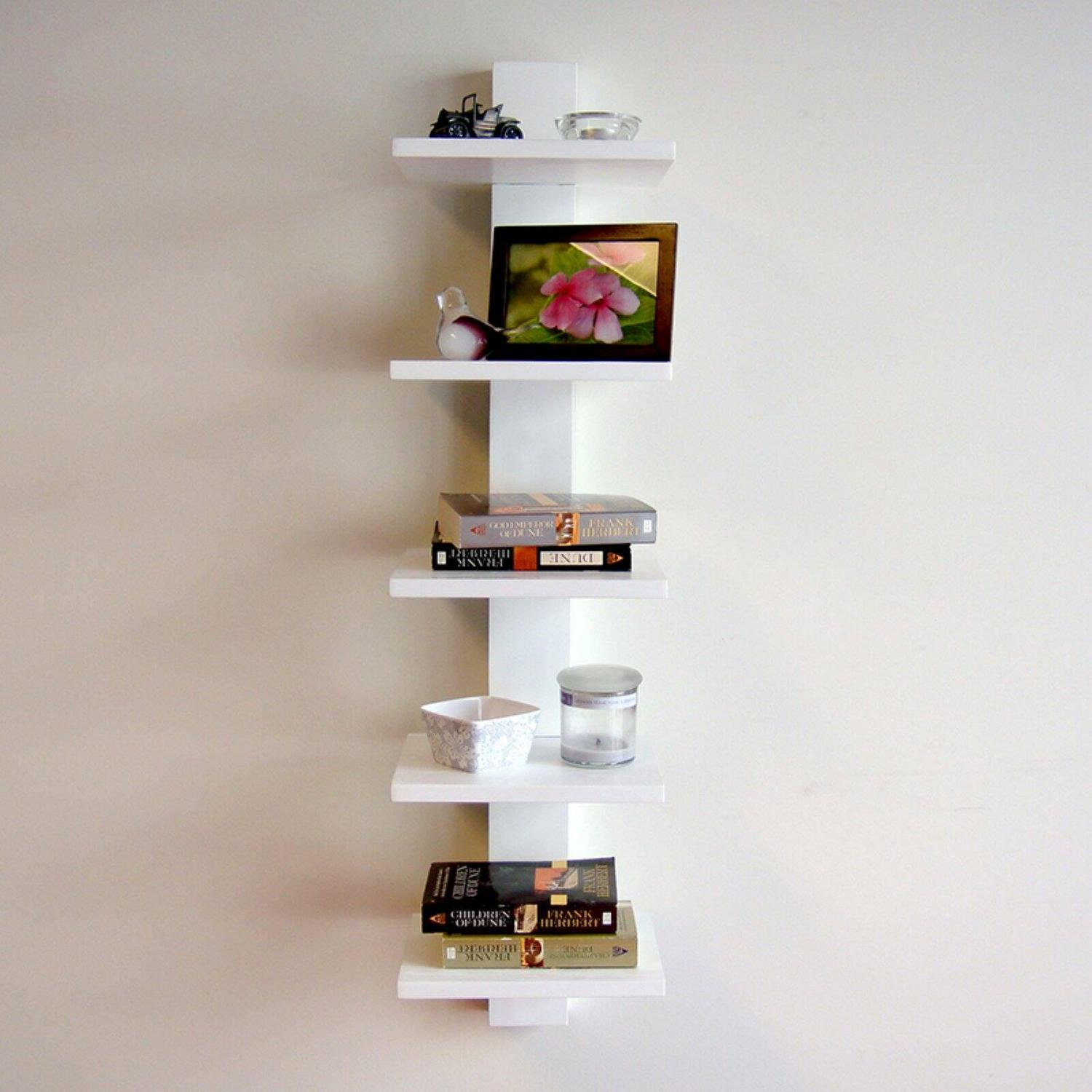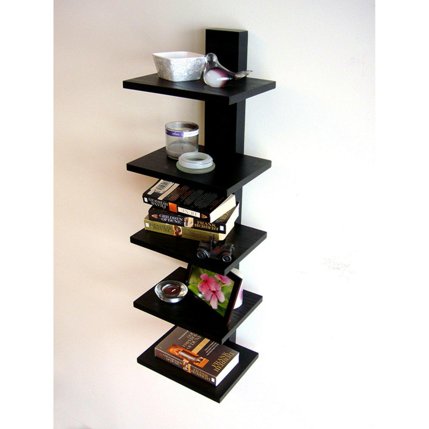 Display your photos, stack your books, or light a candle on this Spine Decorative Wall Shelf. Featuring a simple but modern look that utilizes five shelves, this space saver is easy to assemble and install off the ground and against any wall in the house. The shelf is available in black or white and measures just over three feet tall and each of the five shelves measures just under 10 inches wide..