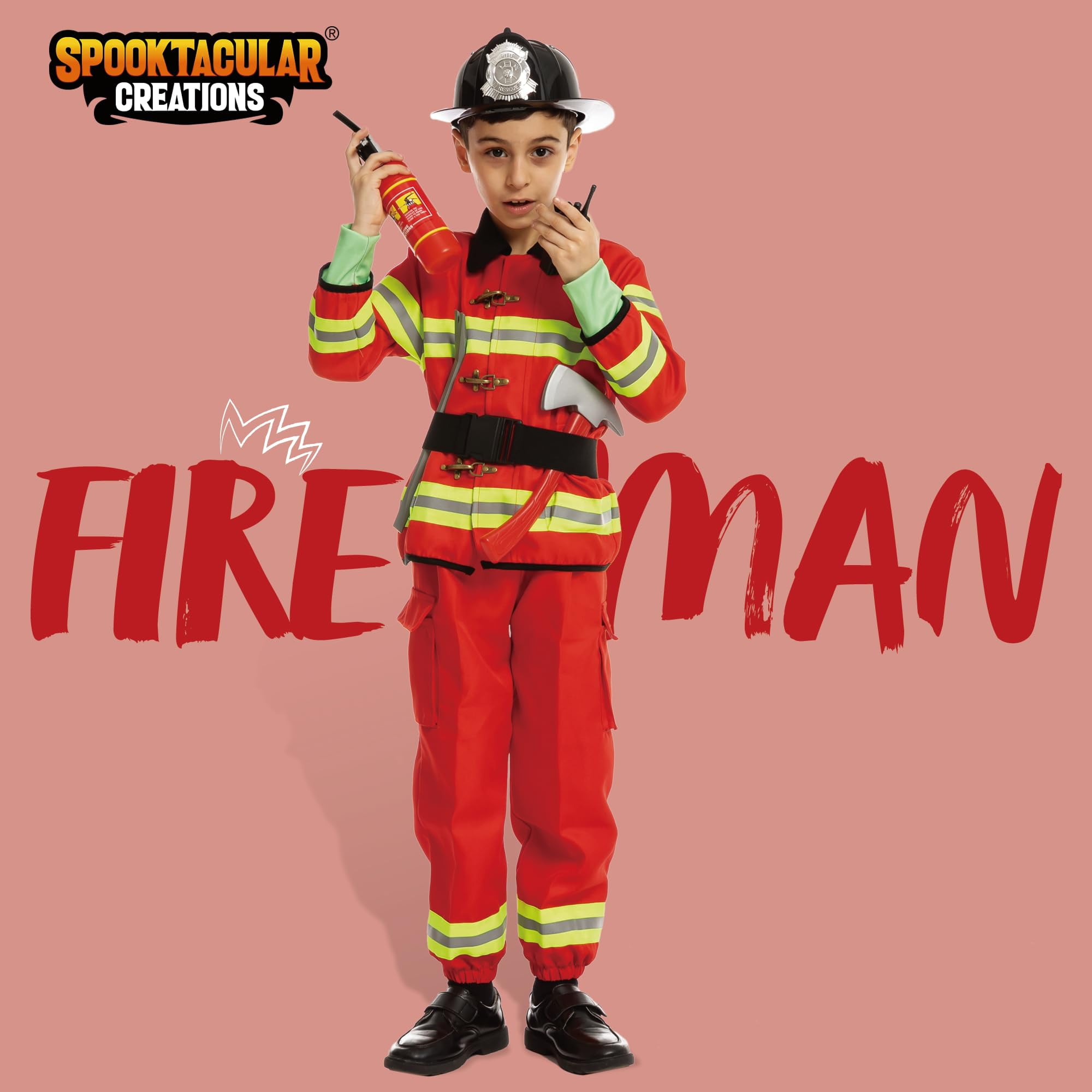 8PCS Firefighter Costume for Kids, Fireman Costume, Fire Fighter Costume for Boys Halloween Dress Up. The Unisex Child Costume Perfect for Kids Fireman, Firefighter Chief Role Pretend Play, Halloween Dress-up. Intrigues Kids’ Imaginary Abilities. Halloween Dress Up Parties, Festivals, Themed Party Costumes for Toddler, Career Themed Party, Fire Station Themed Party, Everyday Play, and More.Note: SYNCFUN is a sub-brand belonging to SPOOKTACULAR CREATIONS.