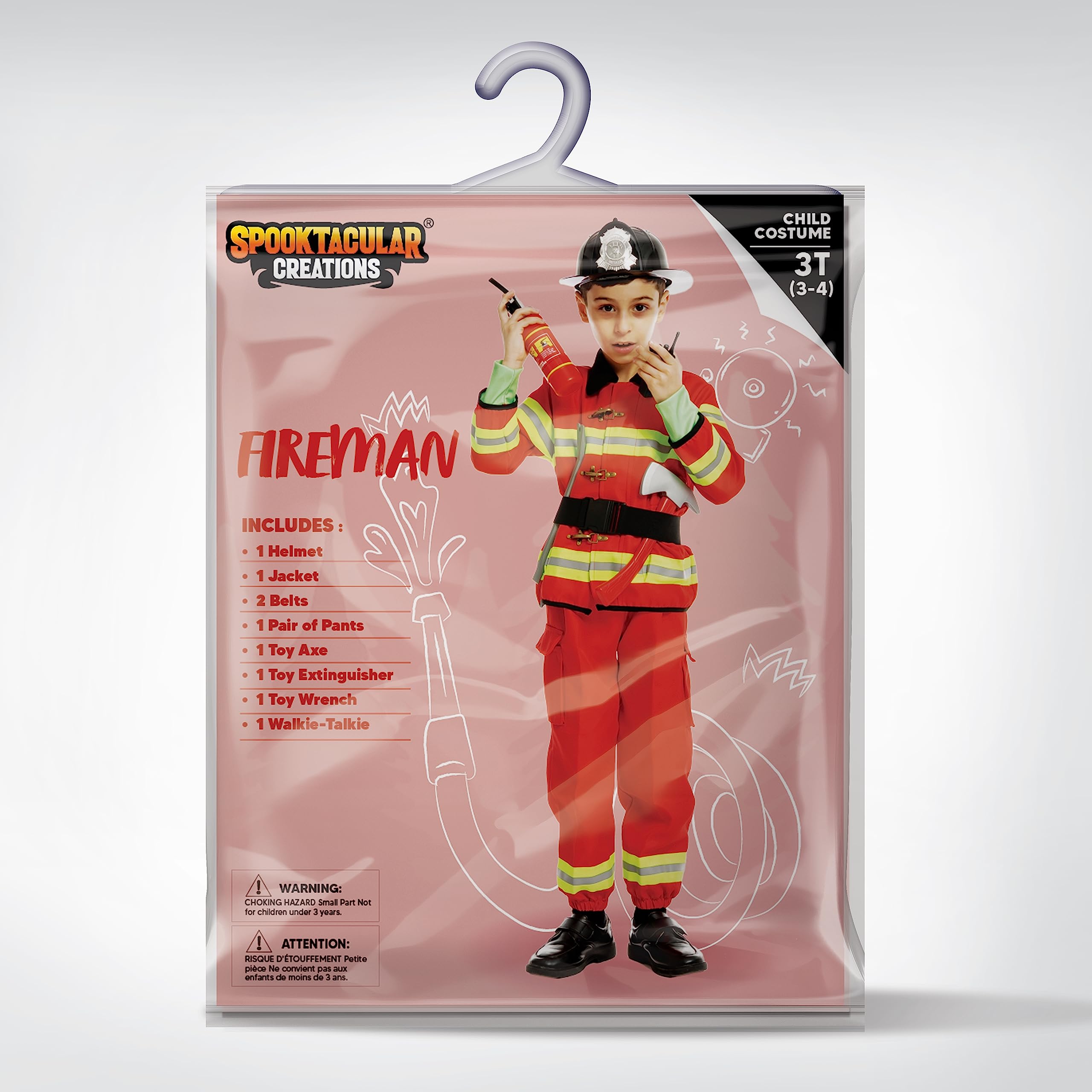Spooktacular Creations 8PCS Fireman Costume for Toddler, Fire Fighter Role Play Costume, Halloween Dress Up Kits, 3T (3-4 yrs)