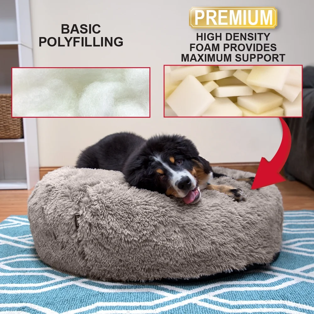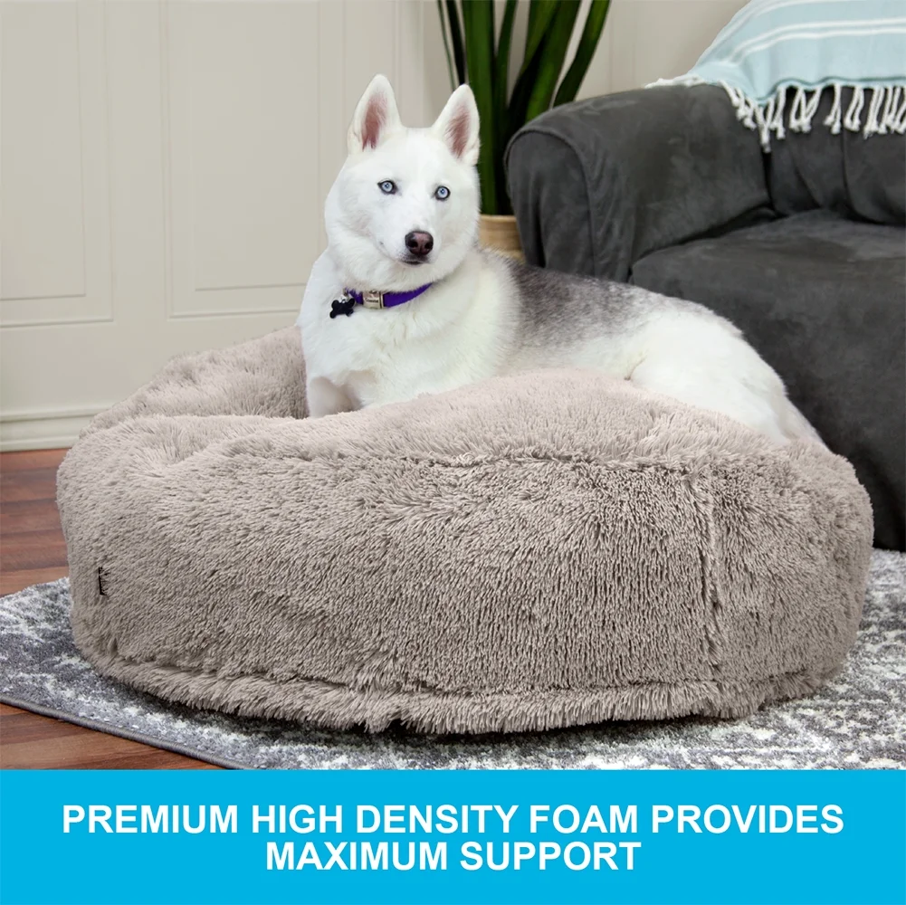 ULTRA-PLUSH DOG BED Made with premium high-density foam that maintains its springiness year after year. It’s so sink-in-soft, it feels like you’re spoiling your dog. EASY CARE While the comfort is top notch, it couldn’t be easier to care for. The shaggy soft cover is machine washable, and a waterproof barrier protects the foam center and wipes clean. GREAT FOR PETS OF ANY AGE The high-density foam is soft and supportive for young pups as well as older dogs who could use a little more pampering and T.L.C. Dimensions: 36″ L x 36″ W x 11.5″ H