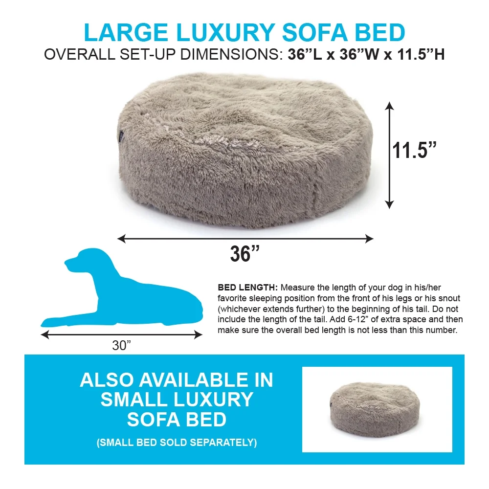 So your dog has been good enough to deserve some spoiling. But why do it once, when you can pamper him for years on end? Our sink-in-soft Sport Pet Luxury Sofa Pet Bed is made to do just that. At its core is a premium high-density foam cushion that supports and envelops your pet whenever he lounges around. But unlike most plush beds, it retains its shape and springiness year after year. The bed is great for pets of any age, but especially for older pooches who may have hip problems. Even the best of pets have occasional accidents (or just build up a pet funk!), which is why our cushion has a waterproof lining to keep it protected and fresh. It’s wrapped in a shaggy, soft cover, and while it’s all a dream to sleep on, don’t think luxury means this bed has to be babied – the cover is machine washable, and the foam core can simply be wiped clean with a soapy cloth. Sure, your furry pal has attempted to hop into your bed to snuggle before. But fair warning: once you bring home the Luxury Sofa Bed, you might be tempted to climb right in his instead!