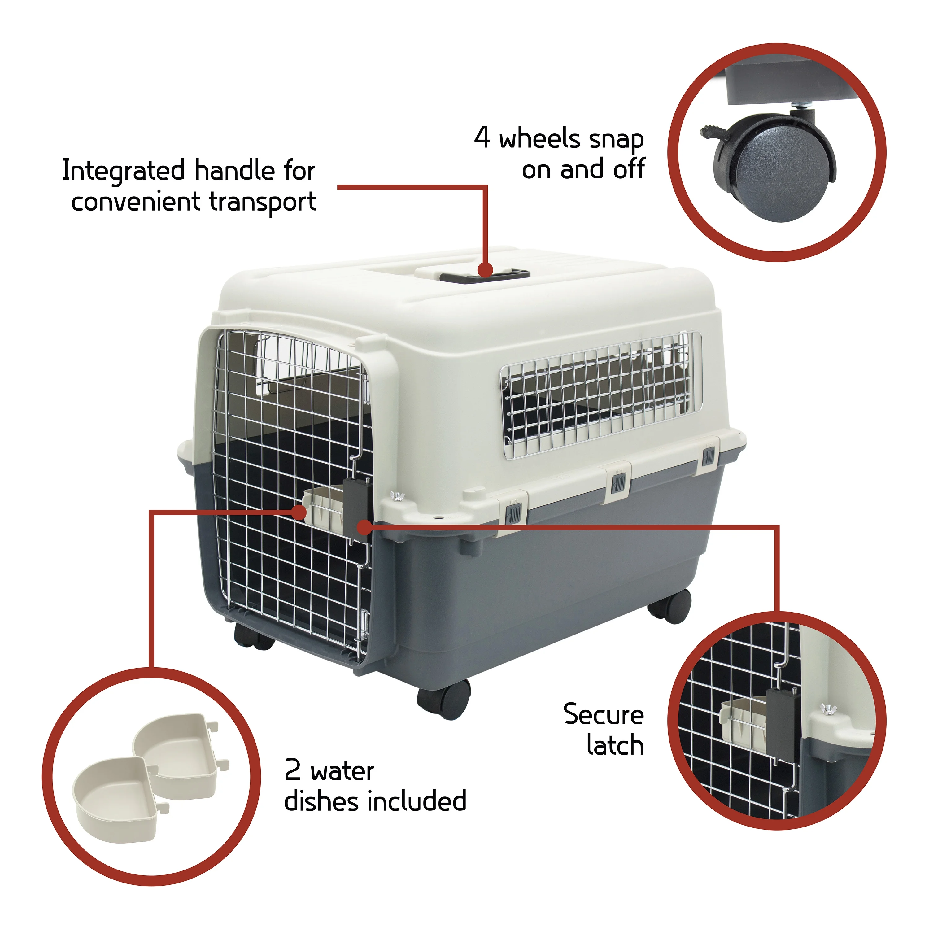 SportPet Designs Airline Approved Plastic Dog Kennel with Wheels, Medium
