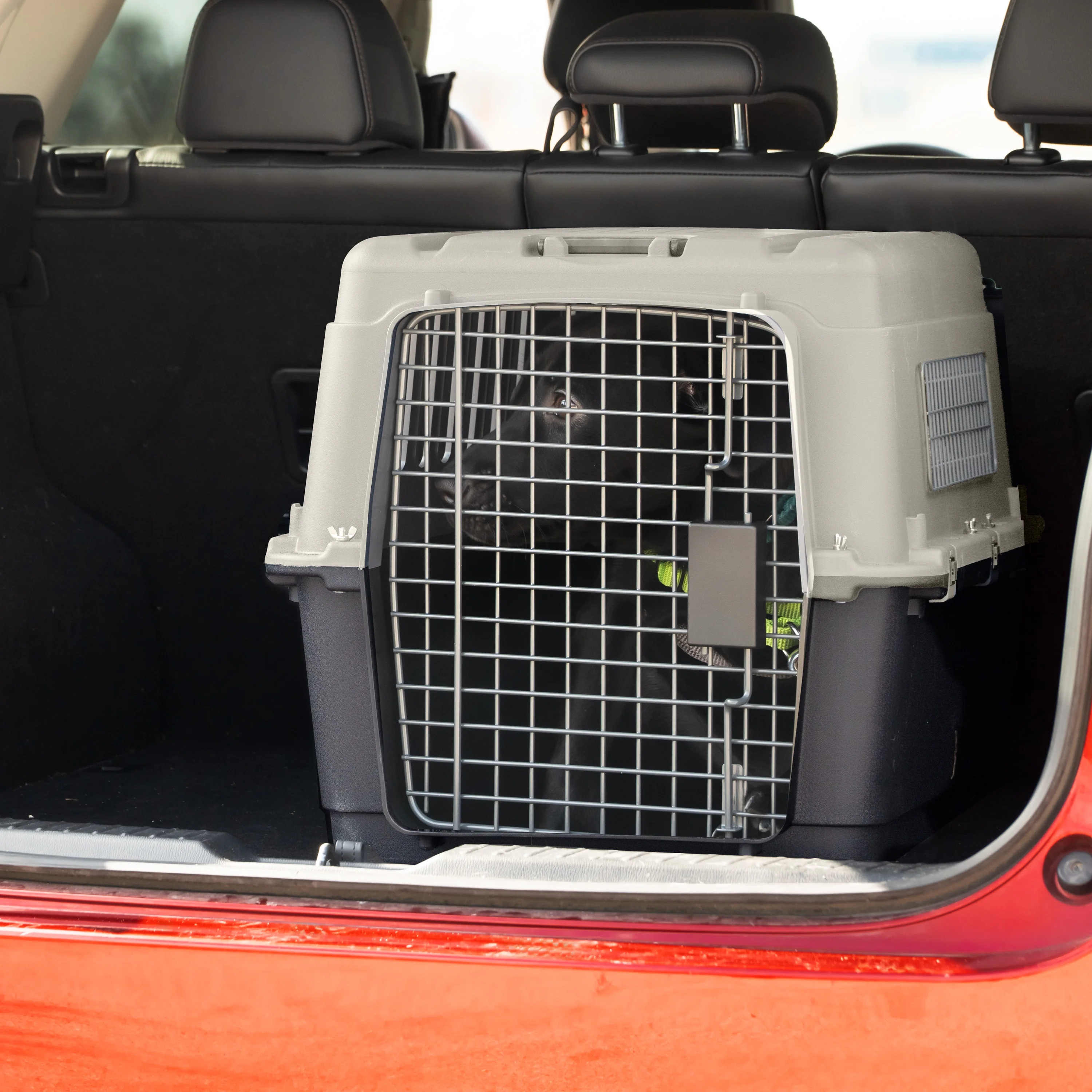 This is a plastic kennel designed for a lifetime of use. Our plastic crate will be your “go to” everyday home crate and Travel kennel. Sizing for help sizing your dog and to ensure you buy the correct size kennel. We also had airline travel in mind when designing this kennel. We include everything you need should you chose to ever fly with your dog. Check out our video for a quick tour of kennel features. Crate/ kennel assembly is fast and easy. Locking snaps hold the kennel halves together; additional included metal hardware locks the kennel together giving you peace of mind that your crate will make it’safe and secure. Some dogs chew their escape through plastic ventilation holes. We use metal slats to mitigate the chewing problem and keep your pet safe. Accident moat pulls spills away from your pet’s body, out to the edges of the kennel and a strong metal kennel door with a smooth, easy-to-grasp latch thick impact resistant poly shell can take a wallop and keep on going. Pet parents should check with their airline before a trip. Airline and cargo carrier rules vary between countries and airlines. Pet crating and kennel shipment rules do change regularly, so be sure to check with proper authority about pet shipments, Reds, and pet certifications and immunizations before your pet’s travel date. Limit kennel time, don’t park under the sun, keep pet in ventilated areas with temperature control and air movement. For pets and intended use only.