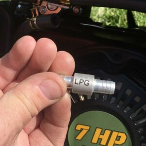 – Read instruction manual before use: FOR LP, you must use the supplied LP Regulator for safe operation. FOR NG, the pressure supplied to the generator must be 4 TO 6 OUNCES or 7 TO 11 INCHES W.C. (water column). The primary regulator at the fuel supply must be capable of delivering the proper volume of fuel at this pressure. Contact your local natural gas professional for installation. Two adapters are included, one is for LPG, the other is for NG. Before using LPG or NG fuel, choose the correct adapter according to the fuel you ve connected”