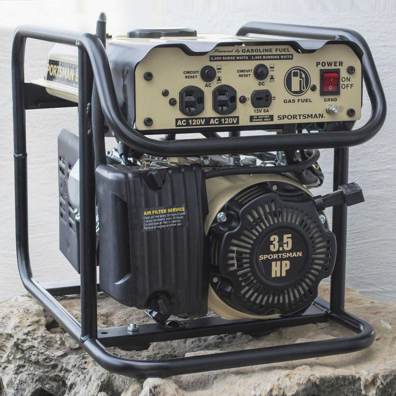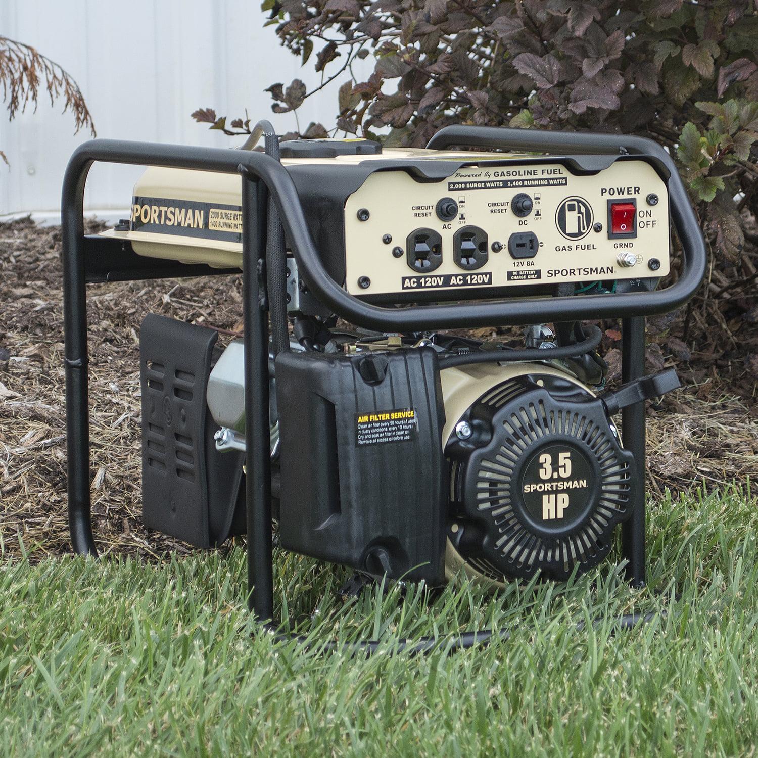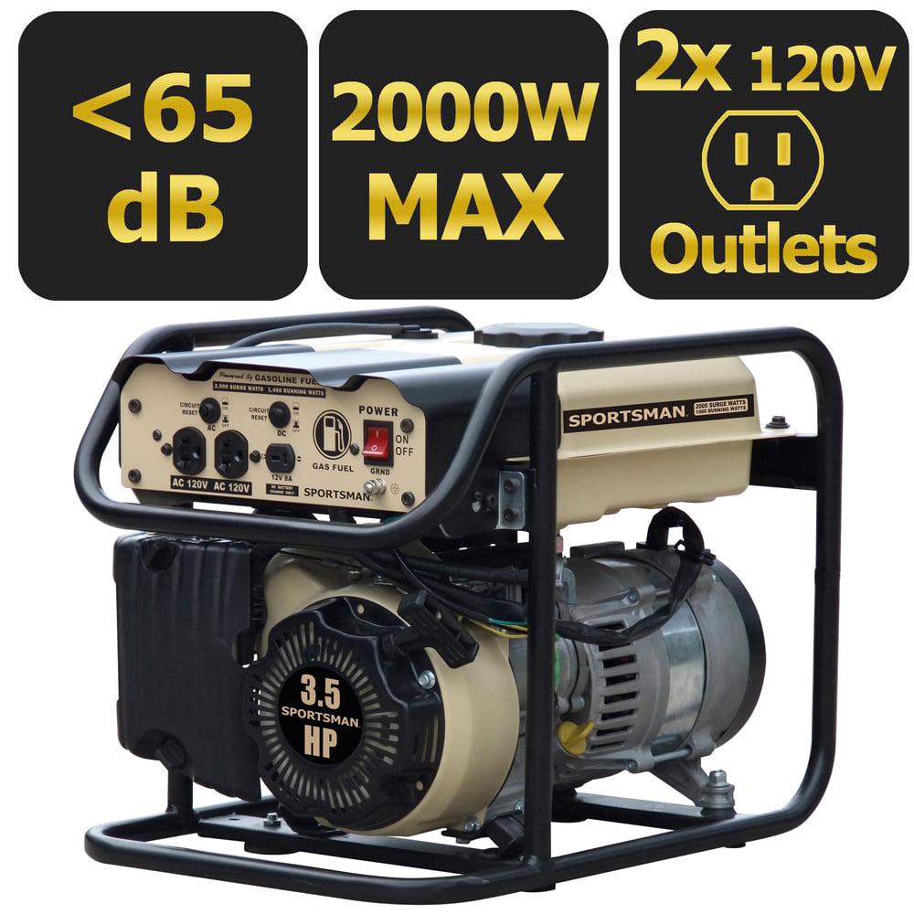 The Sportsman Gasoline 2,000 Surge Watt Portable Generator can power common household appliances and power tools. It is equipped with a two 120 Volt outlet and a 12 Volt DC outlet for battery charging. This recoil start generator can run for 11 hours with a 50% load on 1.5 gallons of gasoline. A generator of this size is ideal for small camping, tailgating parties, or powering tools in the work shed, and could save the day in case of a power outage. The Sportsman Gasoline 2,000 Watt Portable Generator is powered by unleaded gasoline which is a convenient and easy to find fuel source. Choosing a gasoline generator like the Sportsman 2,000 Watt Portable Gasoline Generator can ease your worry when catastrophe strikes, and make your leisure activities even more fun.